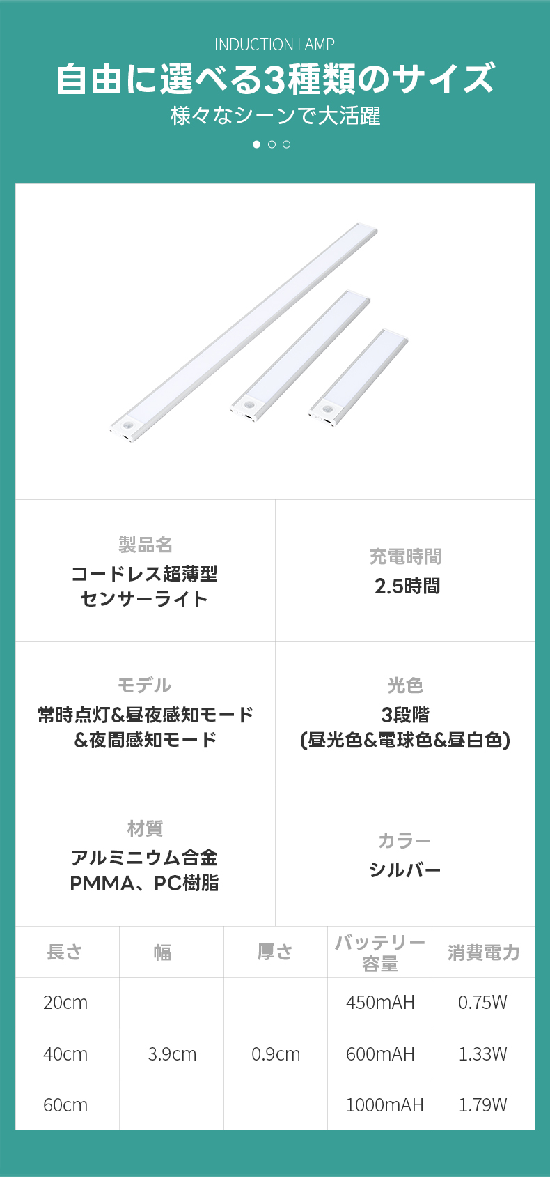 コードレス超薄型センサーライト