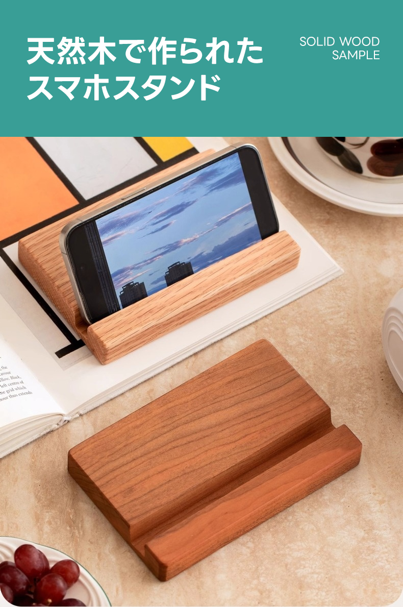 - 【高品質チェリー材使用】:北米産の高品質チェリー材を使用したスマホスタンドは、経年変化による色の深まりを楽しむことができ、ヴィンテージ感を演出します。スマートフォンをしっかり支える安定感のある設計で、日常に贅沢なひとときを提供します。