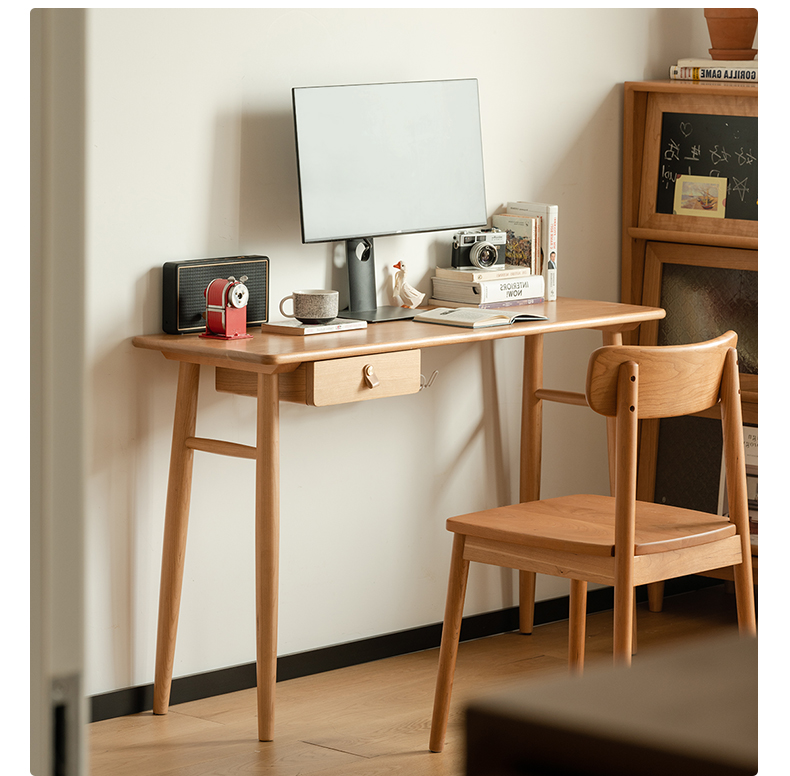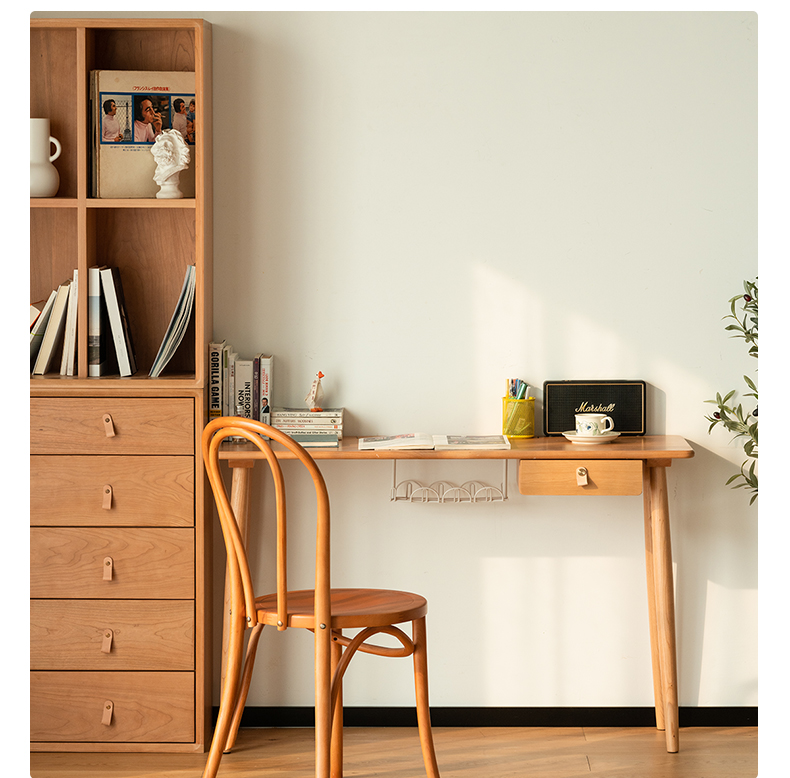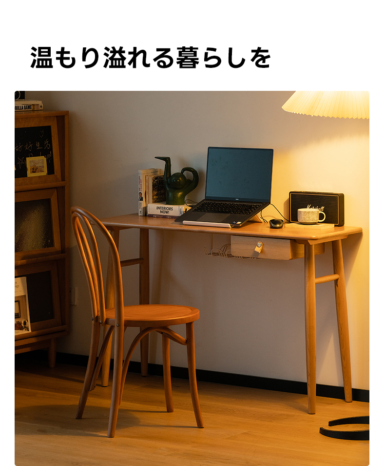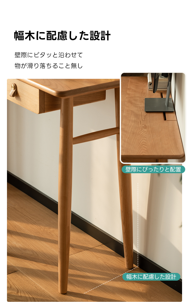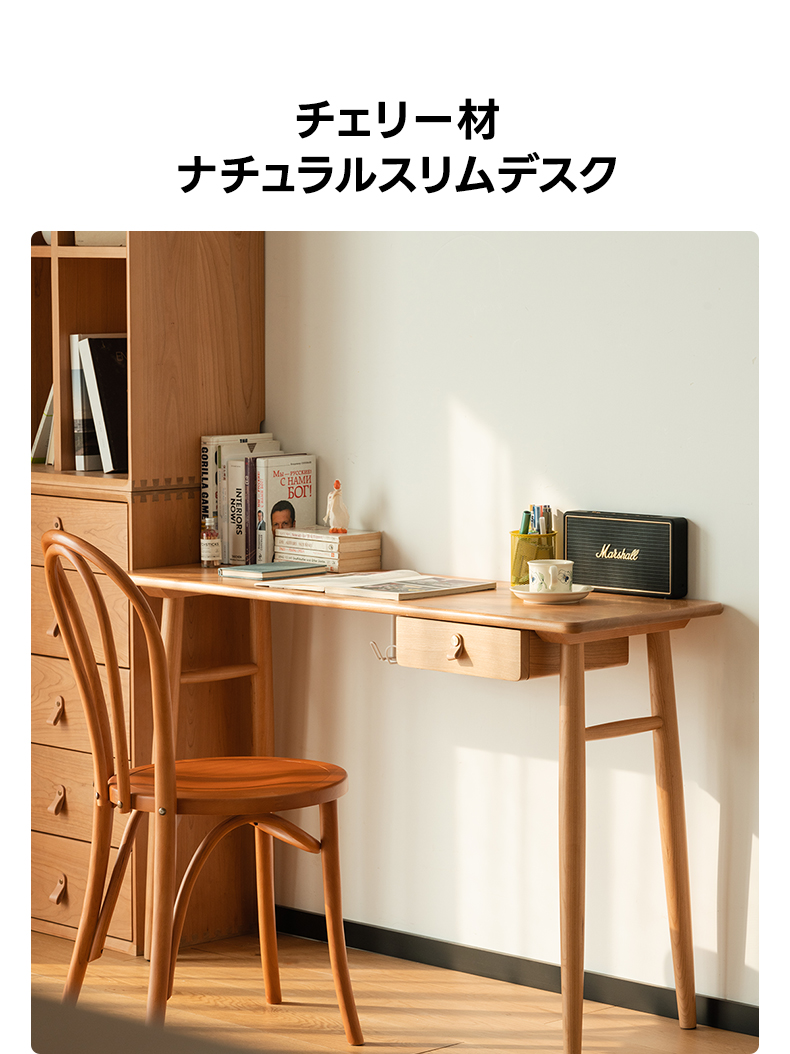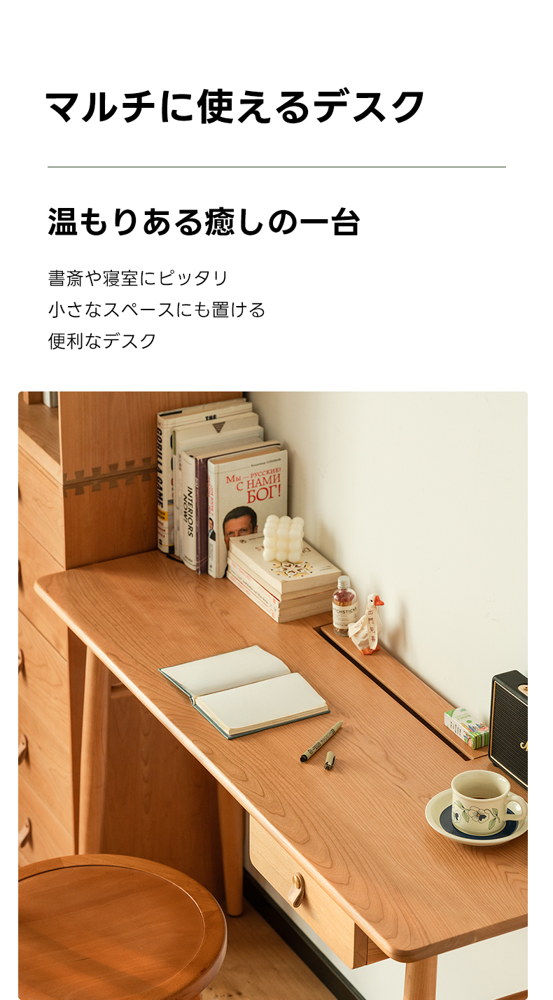 - 【ヴィンテージ感あふれるデザイン】ヴィンテージスタイルのデザインが特徴のこのデスクは、どんなインテリアにも調和します。高級感のあるチェリー材を使用し、自然な木目が美しく、手触りも滑らかです。