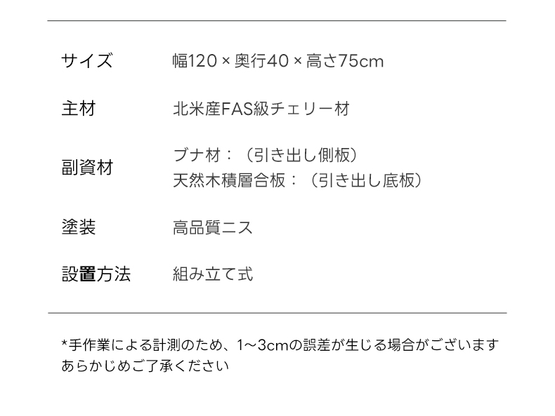- 【高品質な素材と仕上げ】北米産FAS級チェリー材を使用し、高品質なニスで仕上げられています。耐久性に優れ、長期間使用しても美しさを保ちます。