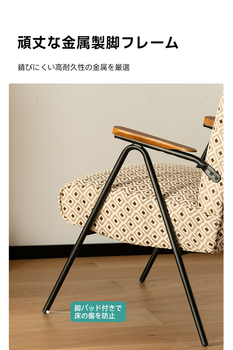 - 【高品質素材とデザイン】:ジャカード織生地を使用し、ソフトで肌触りが良い仕上がり。ホワイトアッシュ材の木製アームレストが、自然な触感と高級感を演出します。レトロ感を引き立てるリベット装飾が施され、クラシカルな雰囲気をプラス。