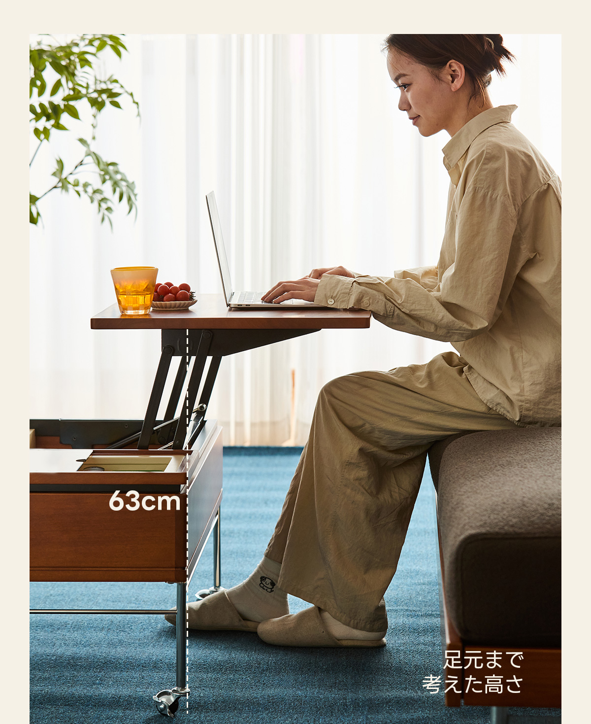 - 【リフトアップ機能で快適な使用感】このテーブルは、リフトアップ機能を備えており、座る位置や姿勢に合わせてテーブルの高さを自由に調整できます。作業や食事の際に便利で、快適な使用感を提供します。