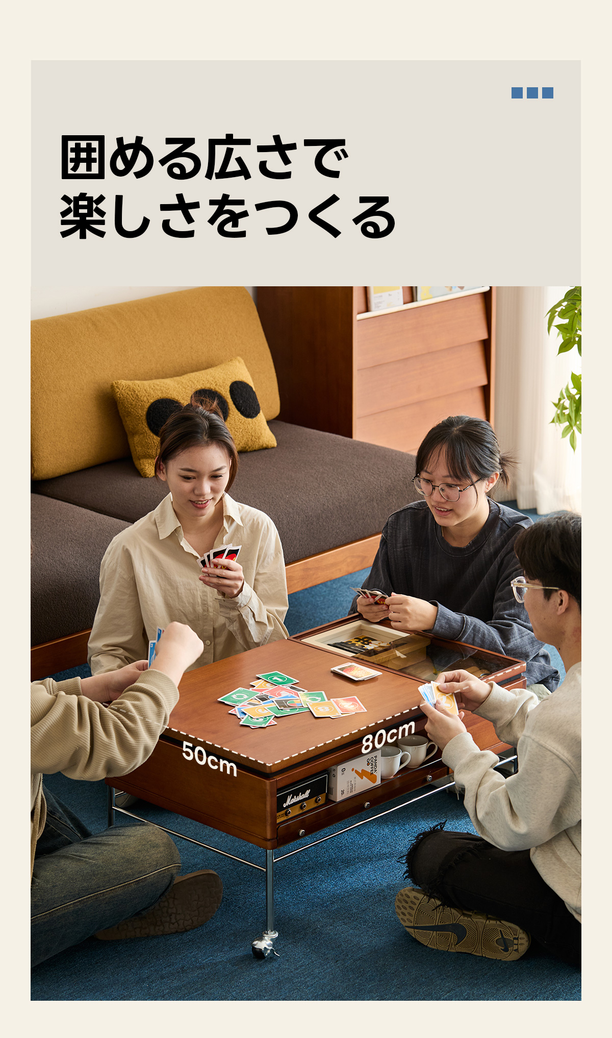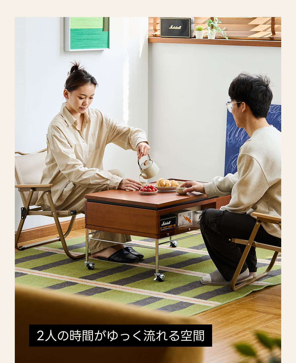 - 【多用途で様々なシーンに対応】リビングテーブルとしてはもちろん、ローテーブルや座卓としても使用可能です。カップルやファミリーのリビングに最適で、スタイリッシュな空間を演出します。