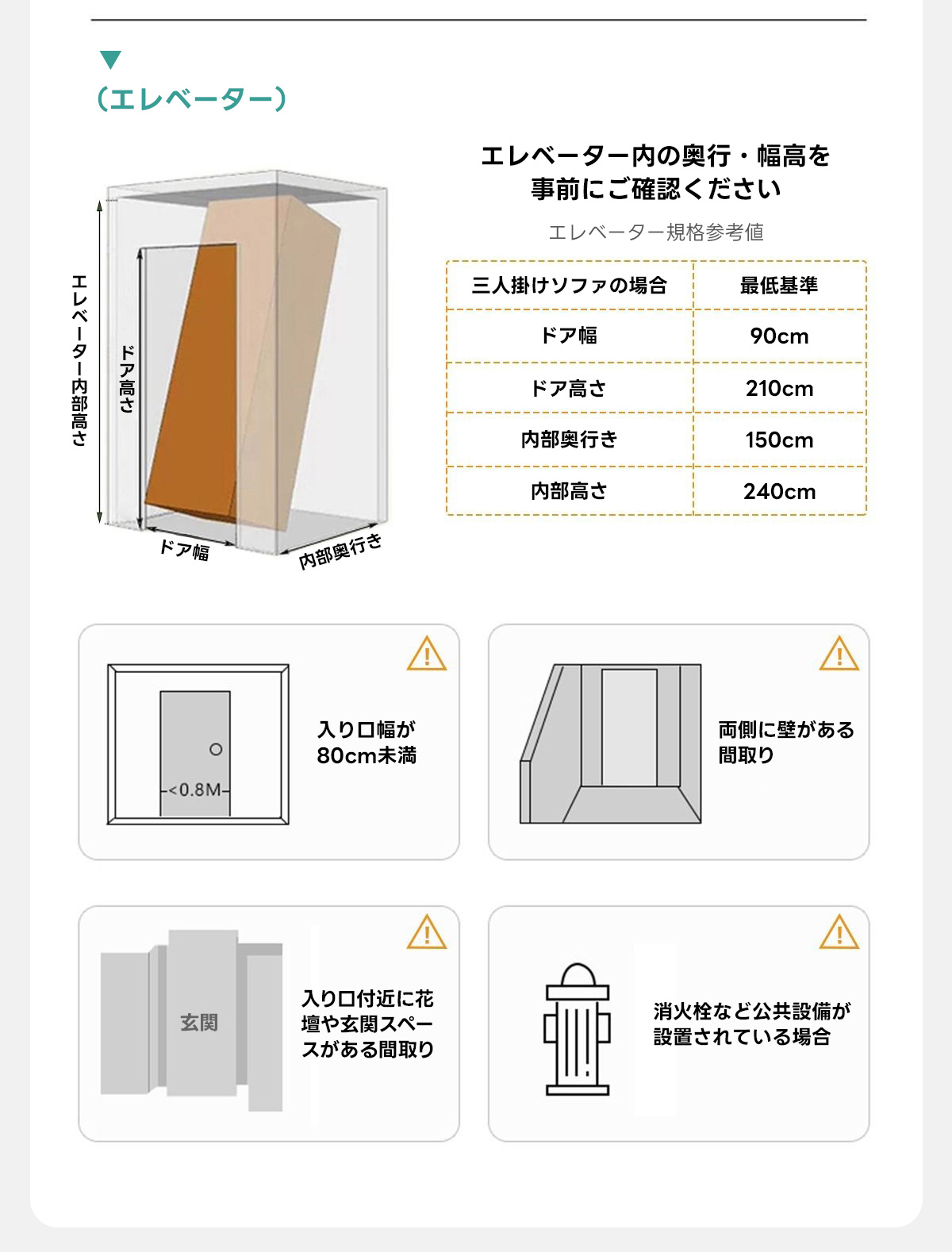 ※搬入不可等の理由による注文キャンセルは、ご返送にかかる費用をお客様にご請求いたします。ご注文前に大型家具の搬入方法をご確認ください。