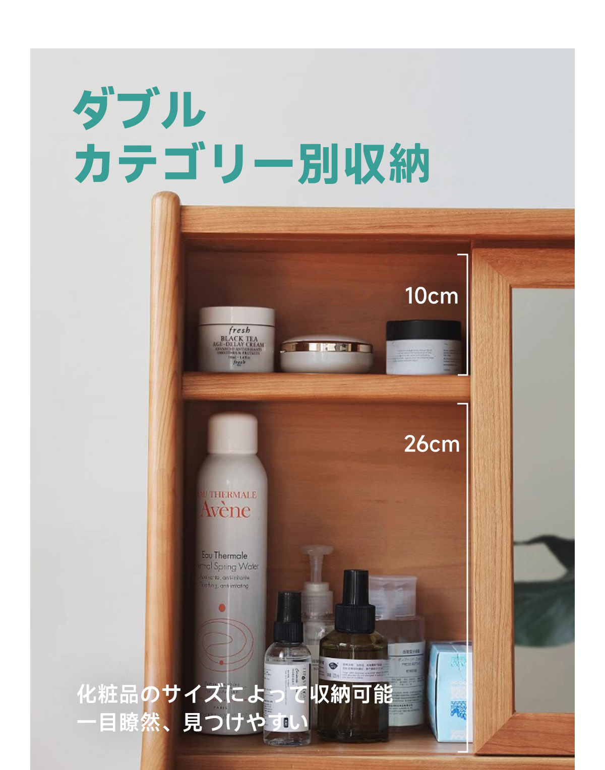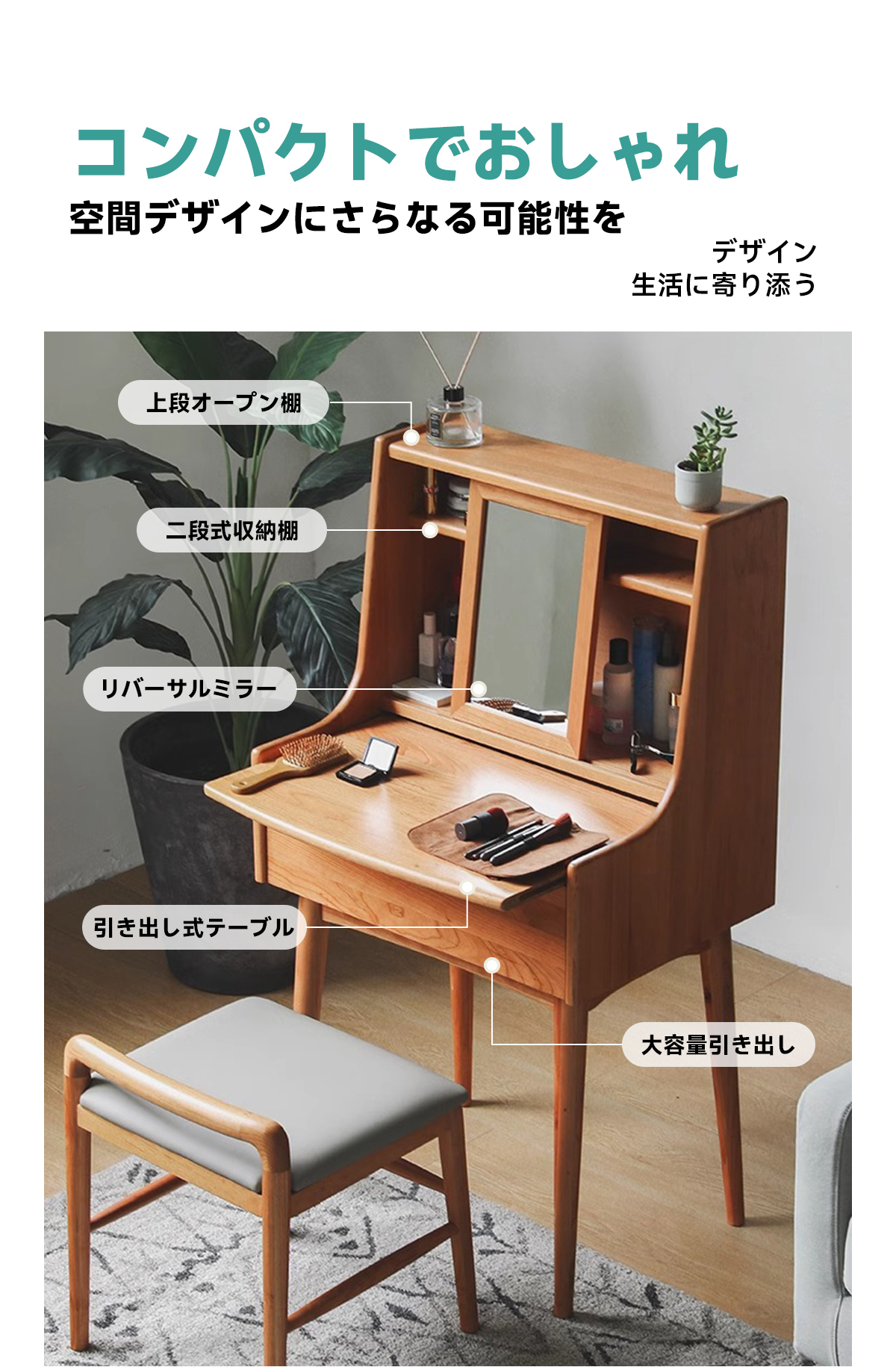 - 【多機能デザイン&省スペース】このミラー付きコンパクトウッドドレッサーは、スライド式リバーサルミラーと大容量引き出しを備えた多機能デザインで、化粧品や日用品を効率よく収納できます。省スペース設計で、65cm x 46cm x 119cmのコンパクトサイズは一人暮らしや限られたスペースに最適です。