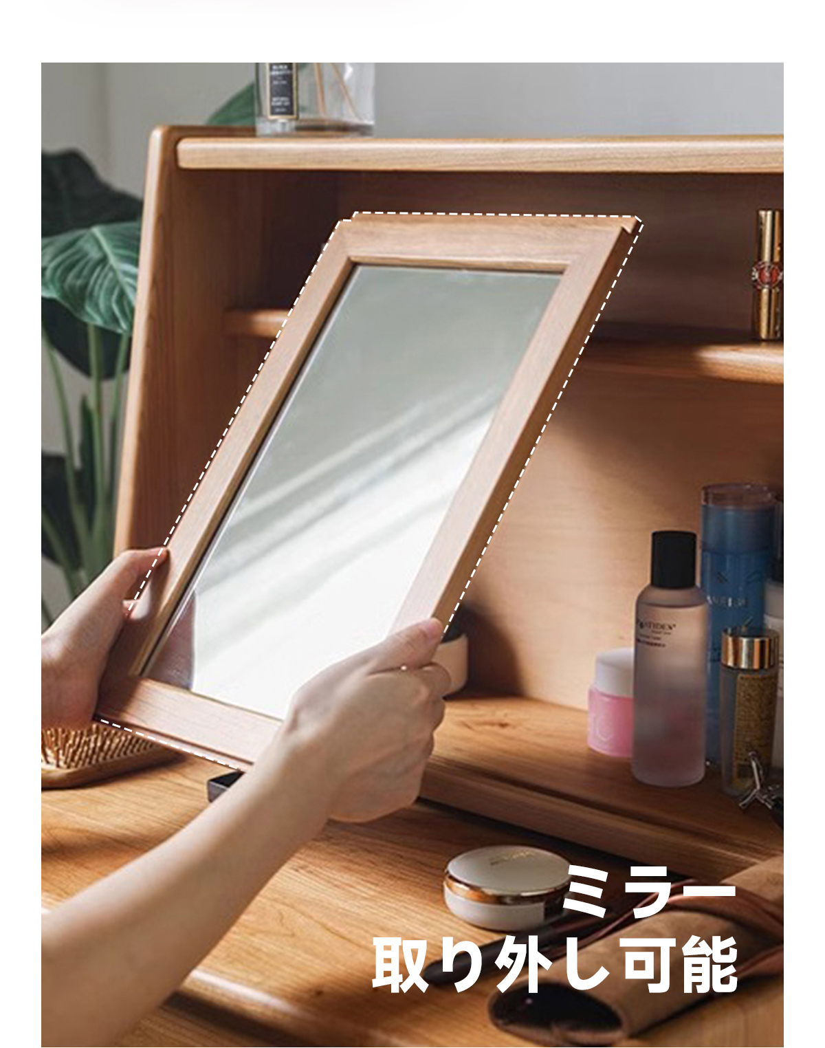 - 【快適な使用体験】このドレッサーは、機能性とデザイン性を兼ね備えており、毎日の使用に快適さを提供します。引き出し式テーブルで作業スペースが広がり、必要に応じてミラーを簡単に取り外せるため、使い勝手が抜群です。