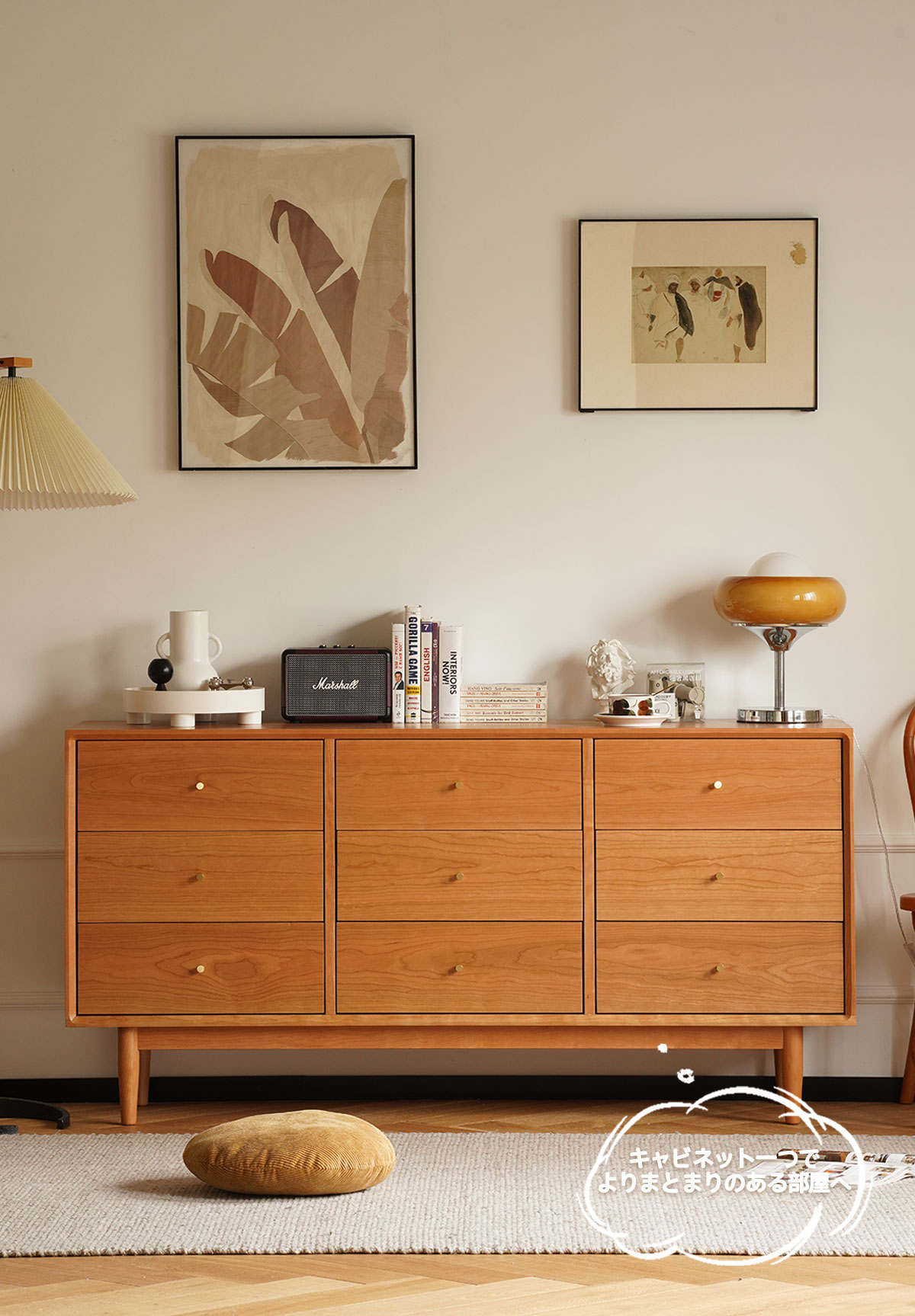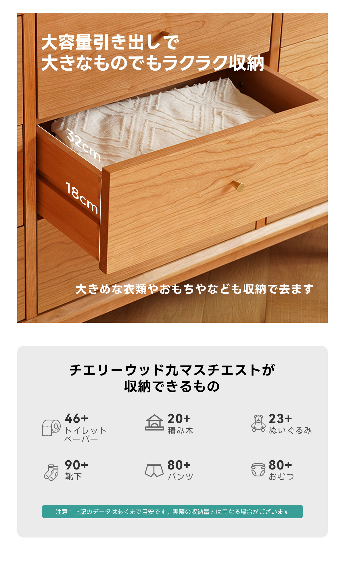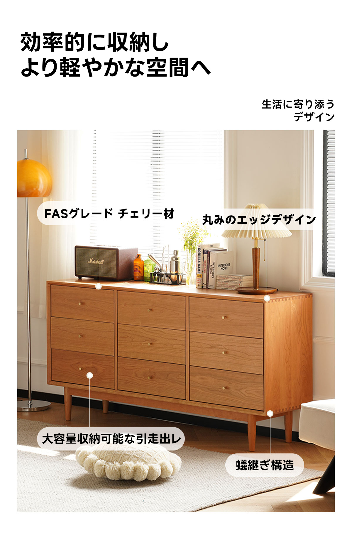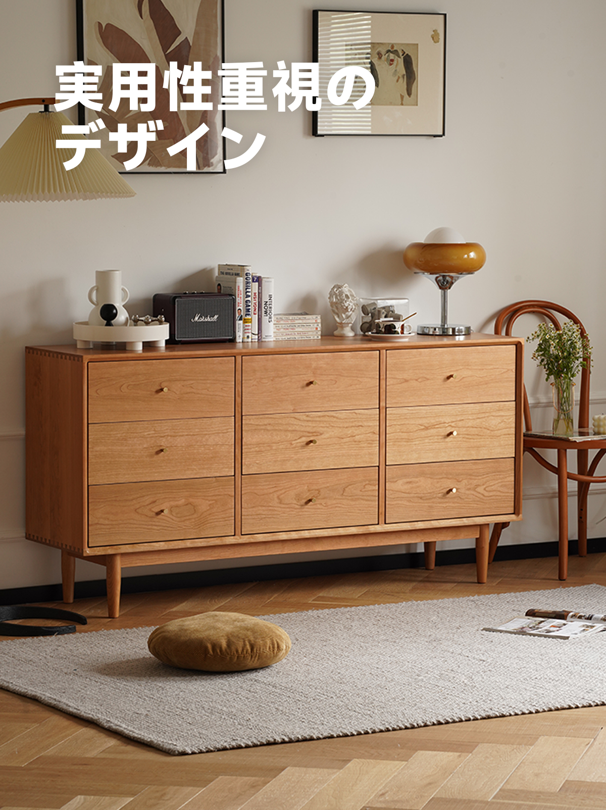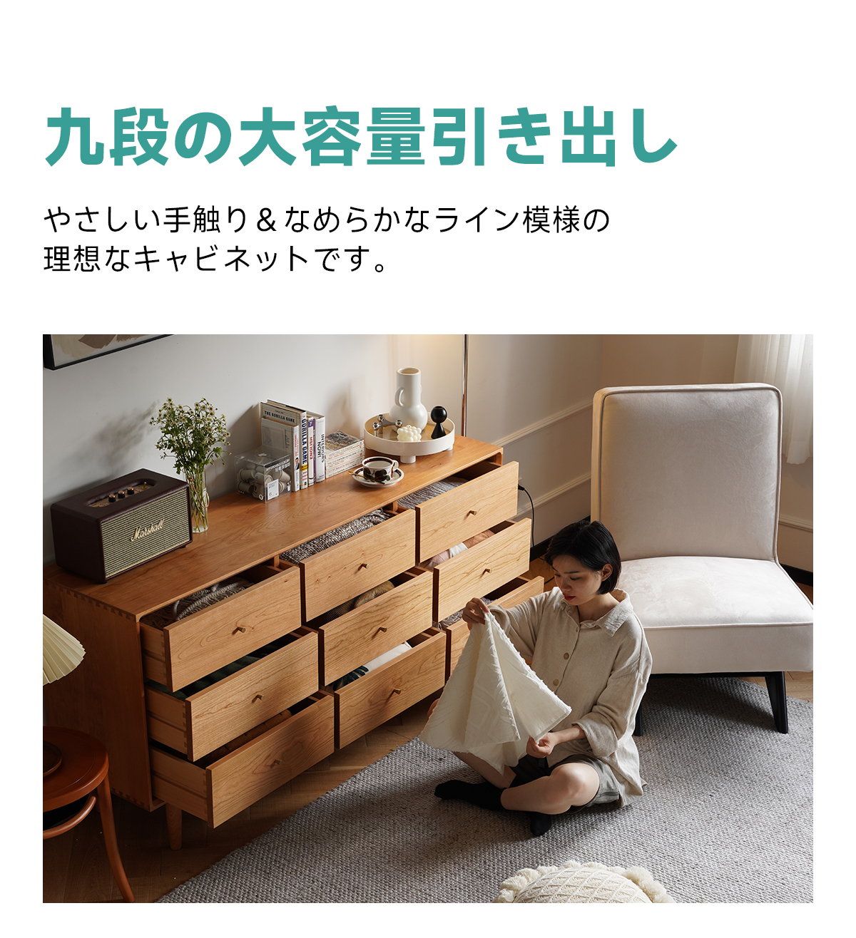 - 【大容量収納と効率的な整理整頓】チェリーウッド九マスチェストは、9つの引き出しを備えた大容量設計で、衣類や小物、書類を効率的に整理整頓できます。リビングや寝室にぴったりで、どんなインテリアにも自然に溶け込みます。