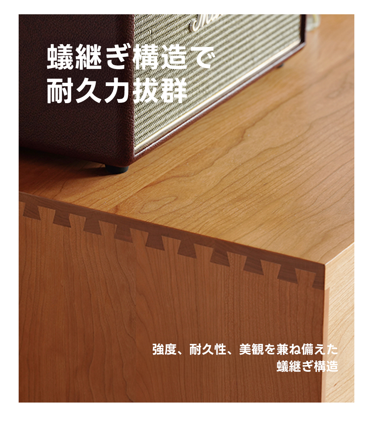 - 【高品質な素材とデザイン】FASグレードの北米産チェリー材を使用し、色ムラや節が少ない美しい木目が特徴です。丸みを帯びたエッジデザインと蟻継ぎ構造により、耐久性と安全性を兼ね備えています。