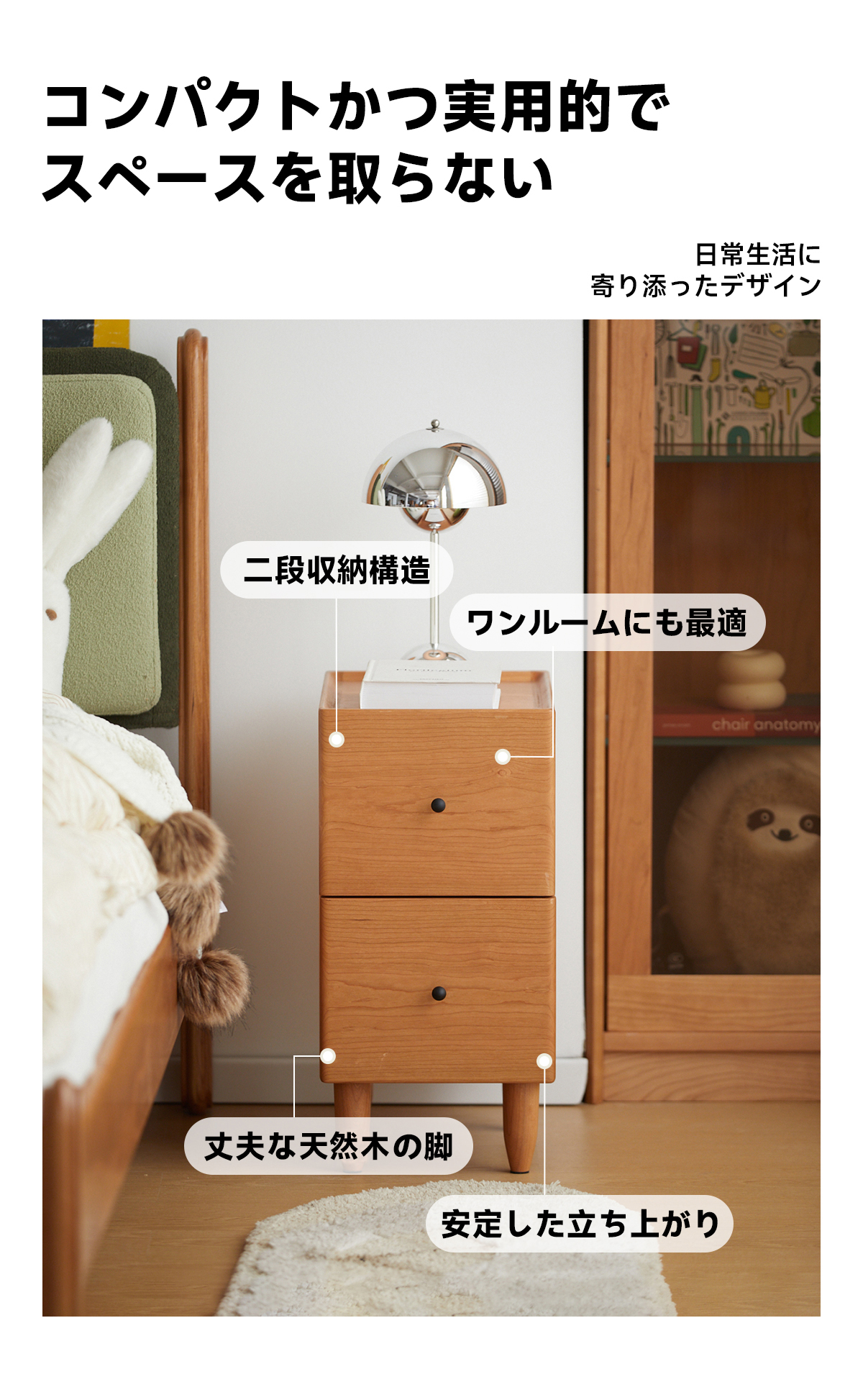 チェリーウッドスリムナイトテーブル