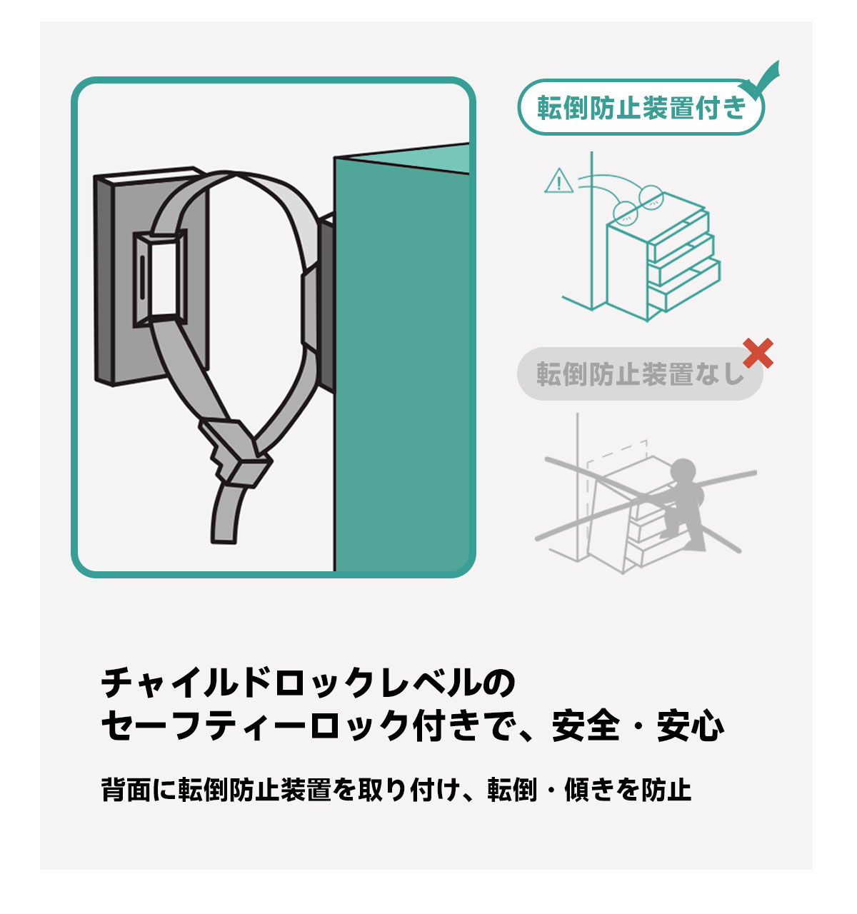 - 【安全性と使い勝手】:チャイルドロックレベルのセーフティーロック付きで、転倒防止装置も備え、安全・安心に使用できます。掃除ロボットもスムーズに通れる設計で、日々の生活を快適にサポートします。