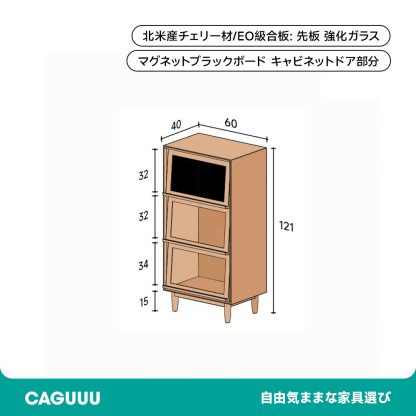 Woody Prime Cherry ブラックボード付きベゴニアガラス扉キャビネット