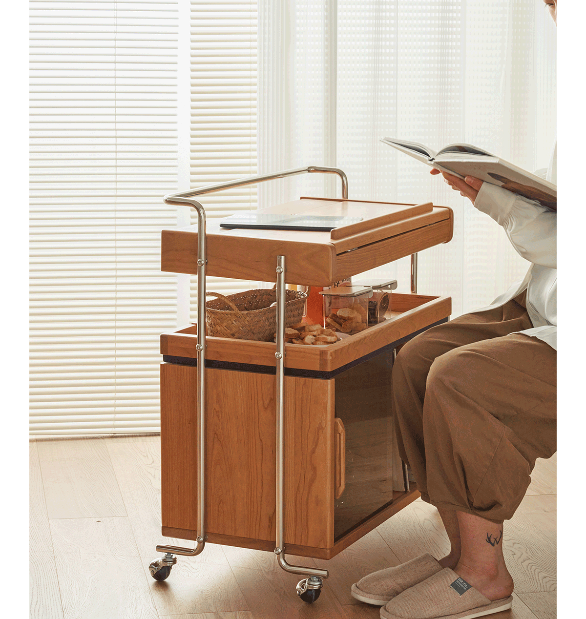 Woody Prime Cherry キャスター付き角度調整機能ウッドサイドワゴン