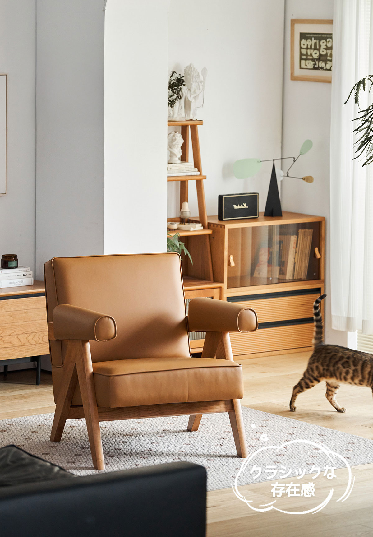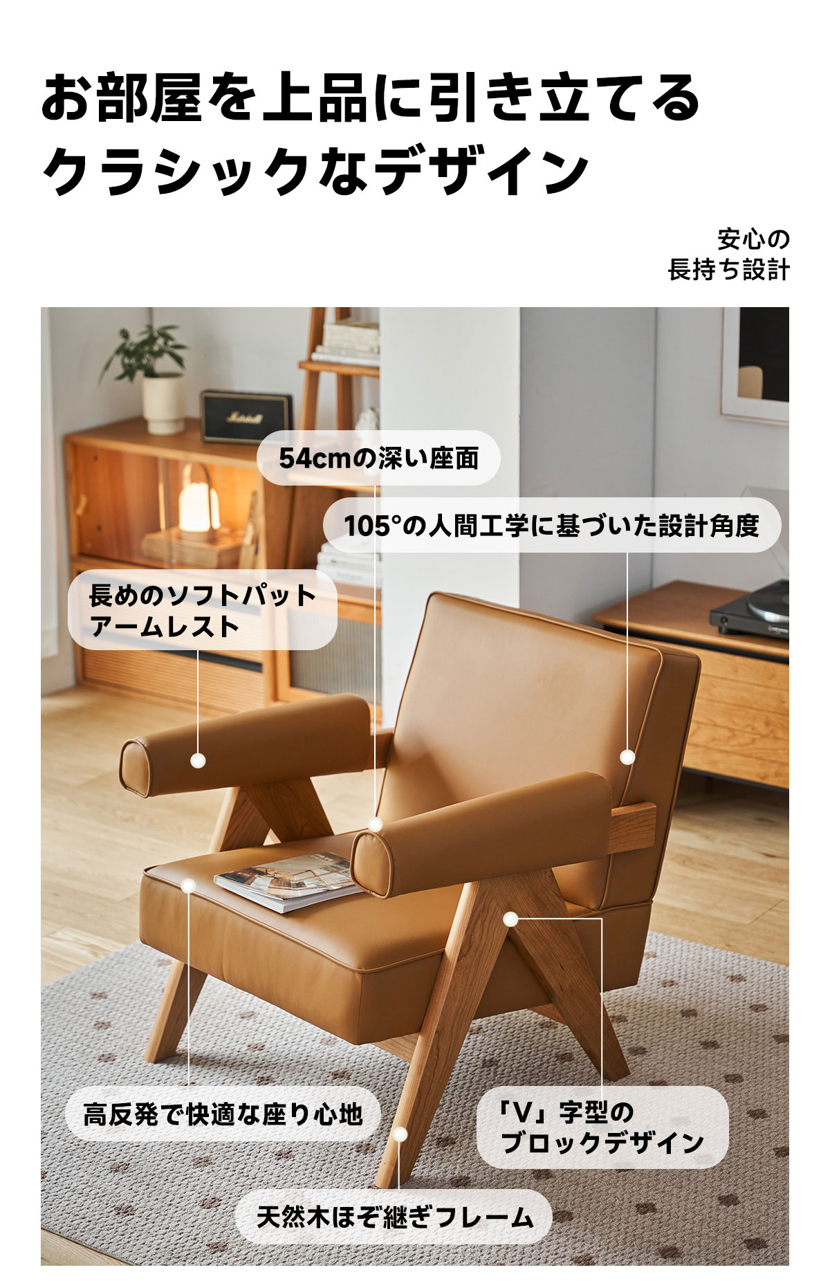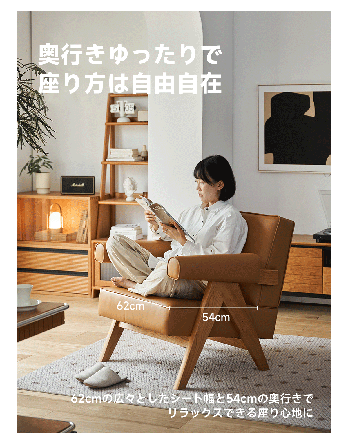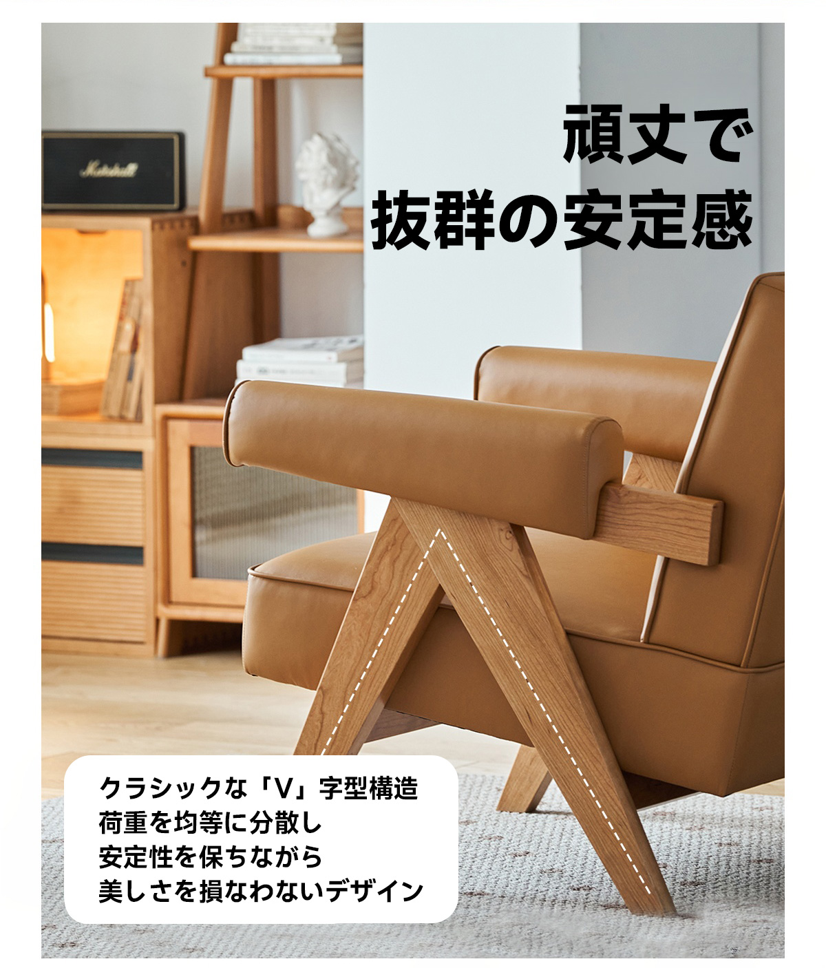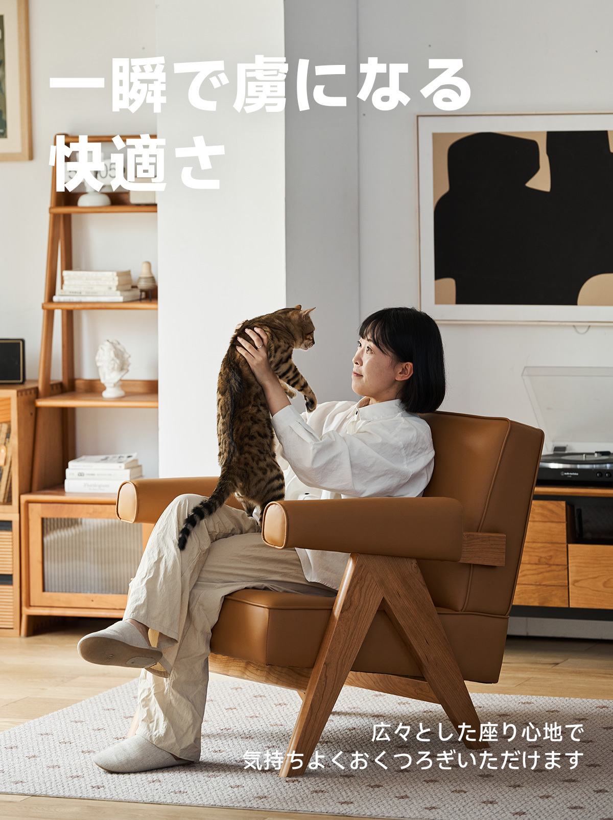 - 【高品質な素材とデザイン】FAS級北米産チェリー材を使用したフレームは、耐久性と美しさを兼ね備えています。合皮レザーのシートは滑らかで、汚れや傷に強く、長期間の使用にも耐えられます。