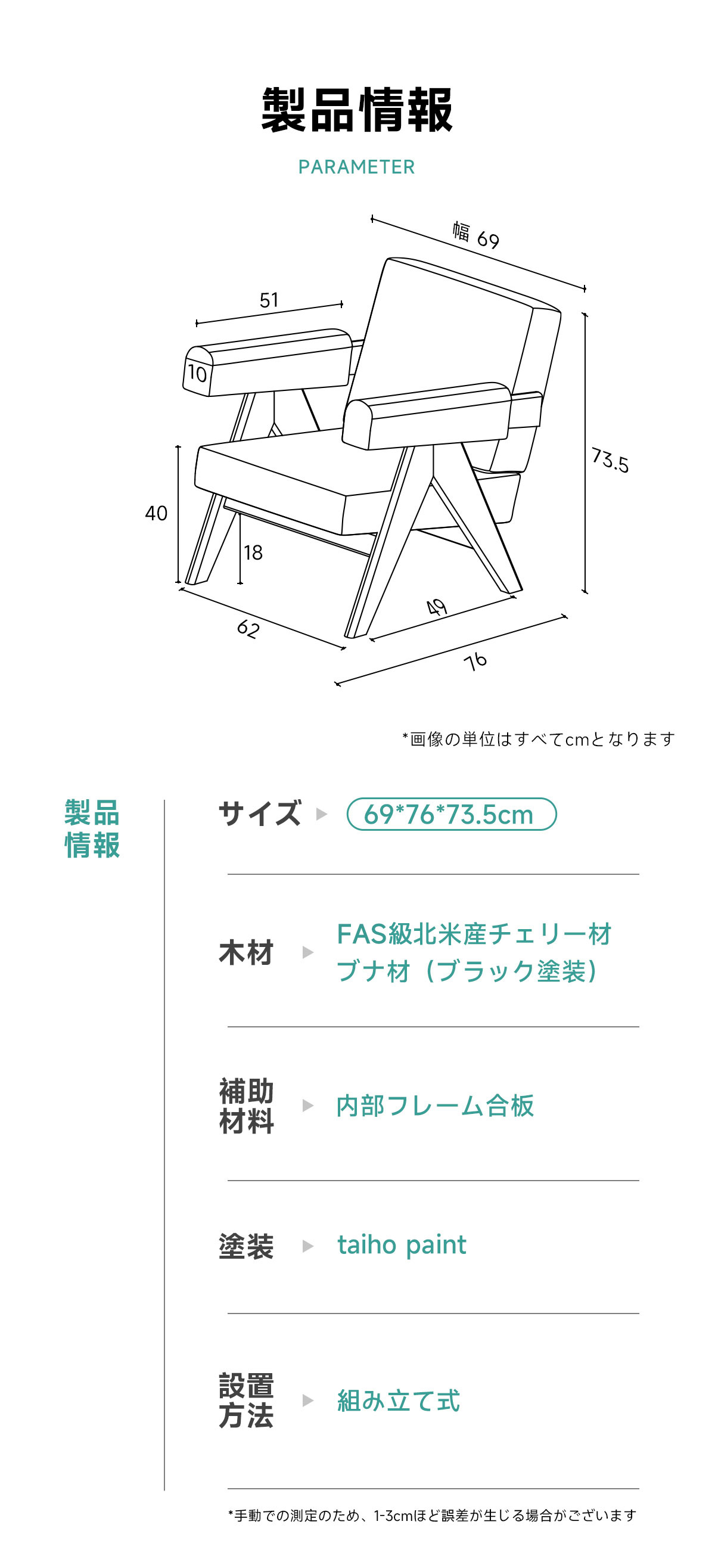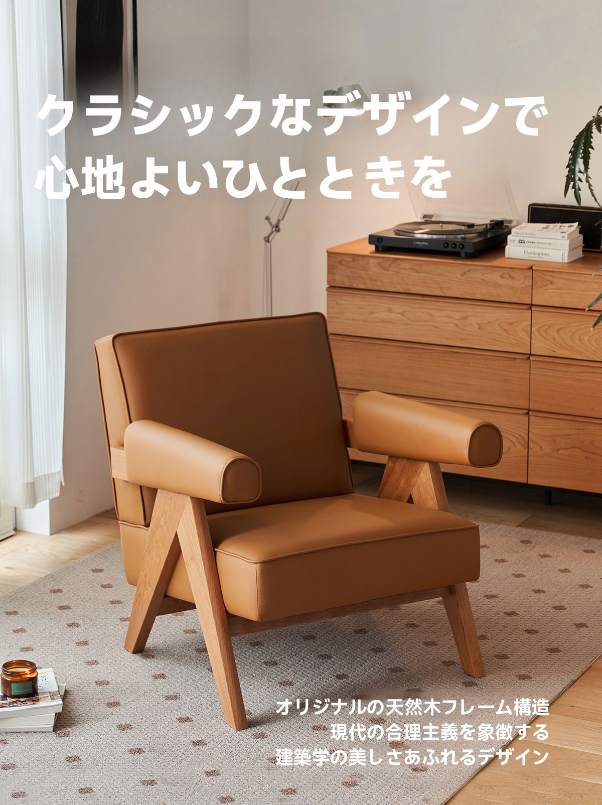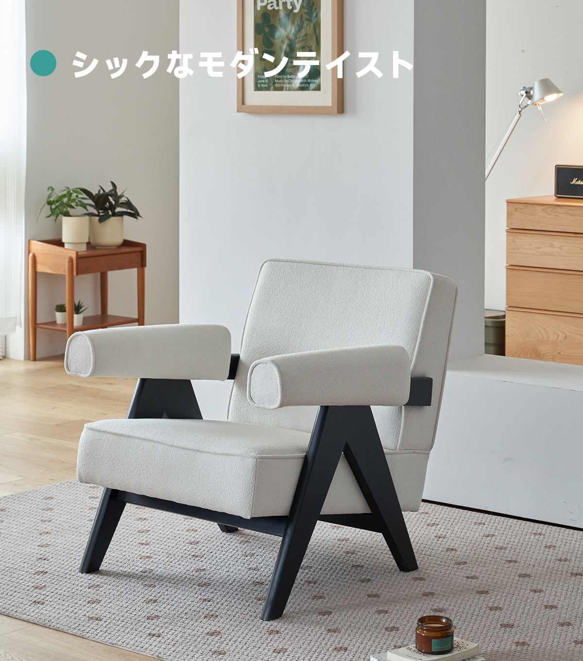 - 【シンプルでモダンなデザイン】ウッドアームスクエアソファチェアは、シンプルでモダンなデザインが特徴です。どんなインテリアにもマッチし、リビングや寝室をスタイリッシュに演出します。