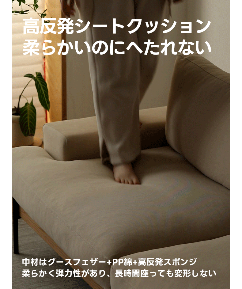 - 【快適な座り心地】クッションはグースフェザーとPP綿を使用し、ふわふわで通気性が良く、長時間座っても疲れにくい設計です。座面の奥行きは55cmで、ゆったりとしたくつろぎを提供します。