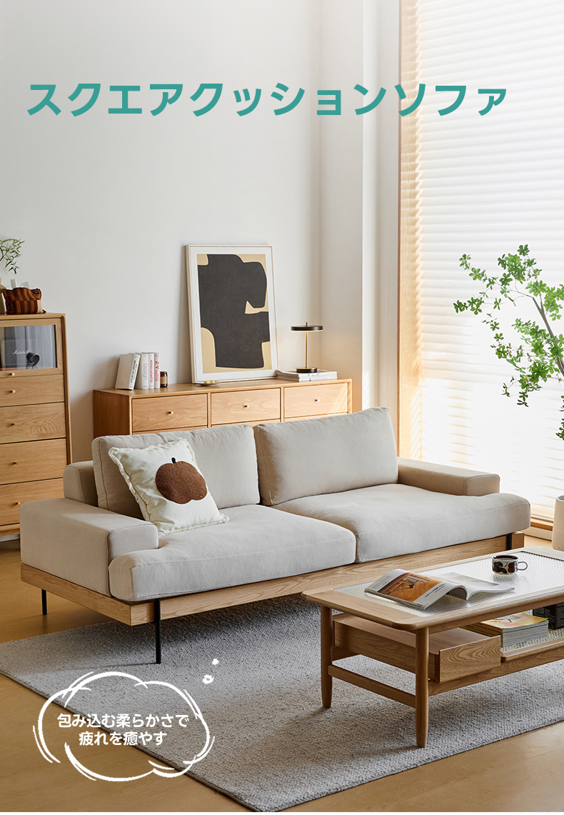 Woody Prime Oak スクエアクッションソファ【カスタマイズ可】