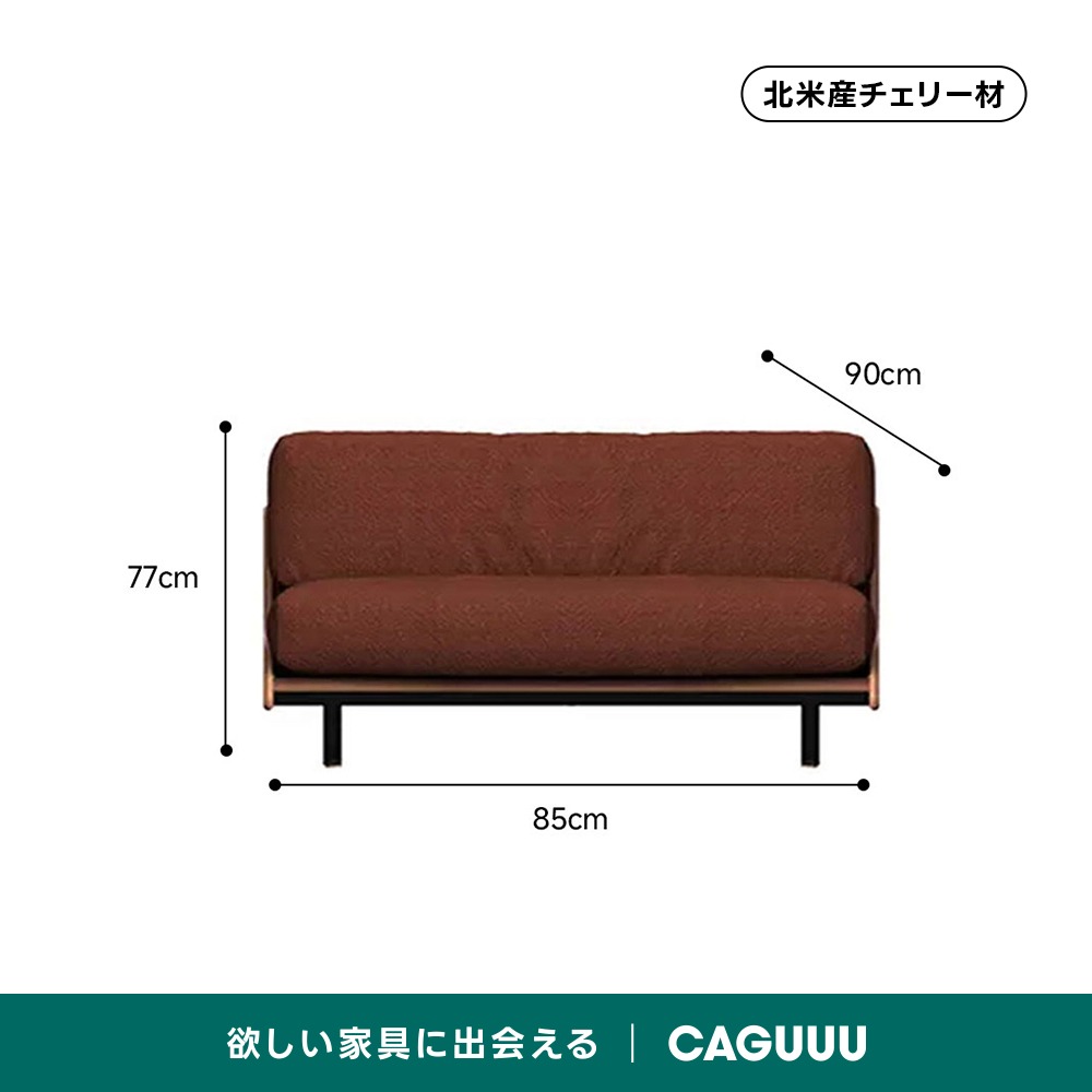 - 【高品質な素材とデザイン】フレームは天然木のチェリー材を使用し、美しい木目と耐久性を兼ね備えています。スリムなアイアン脚がモダンな印象を与え、どんなインテリアにも馴染みます。