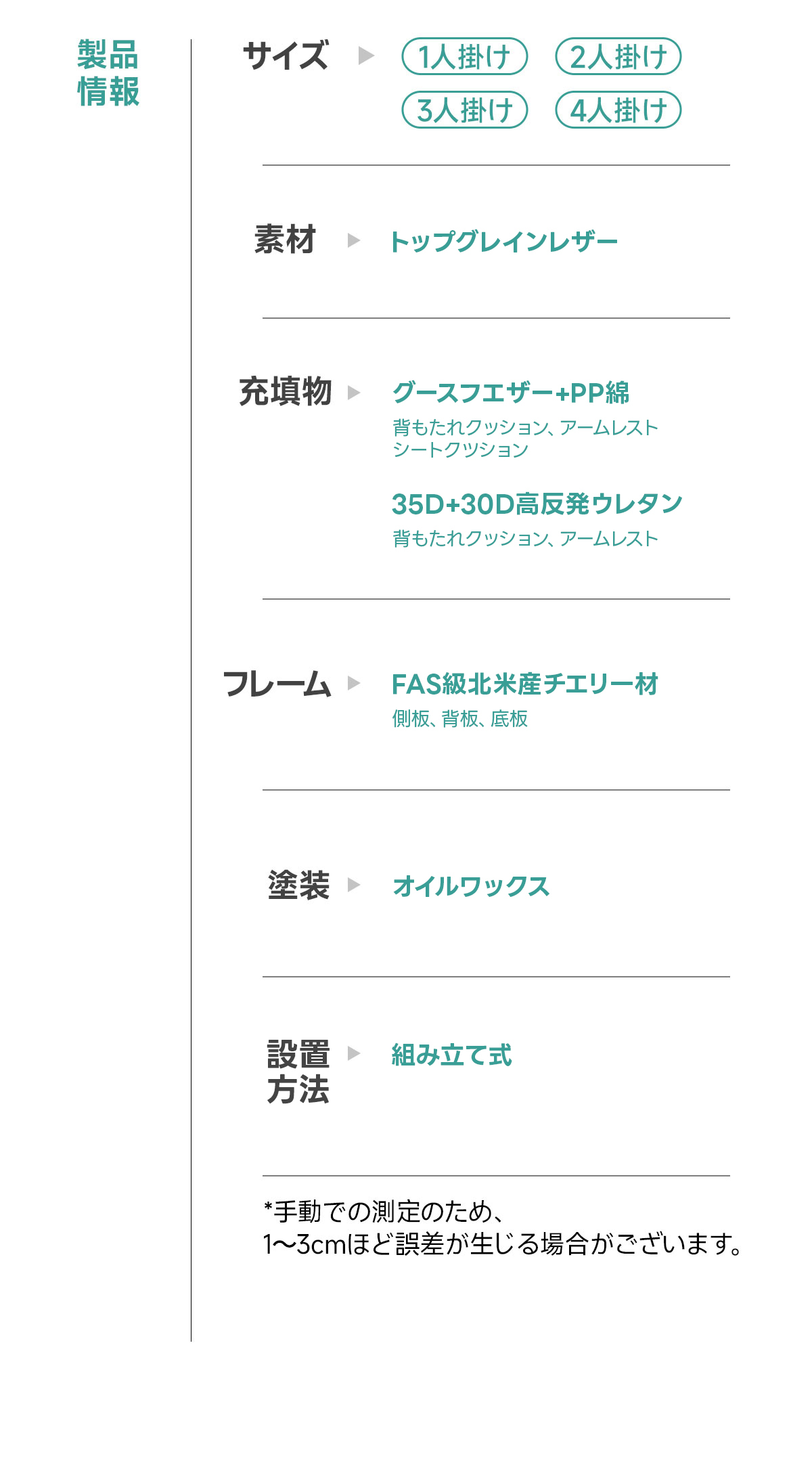 - 【多様なシーンに対応】このソファは、1人掛けから4人掛けまでのサイズ展開があり、リビングや寝室など様々なシーンで活躍します。カスタマイズ可能なため、お好みのデザインや仕様を選ぶことができ、どんなインテリアにもフィットします。