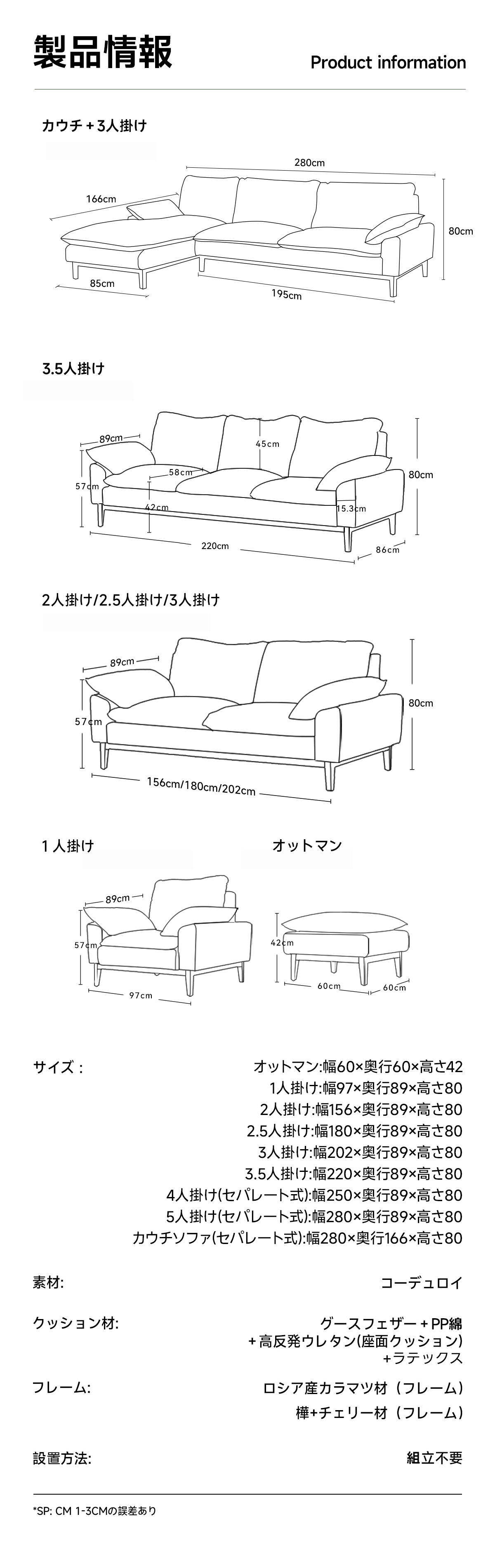 - 【多様なサイズと適用範囲】:一人掛けから三人掛けまで、さまざまなサイズが用意されています。オットマンも付属しており、コンパクトな一人暮らしからファミリー向けまで、幅広く対応します。
