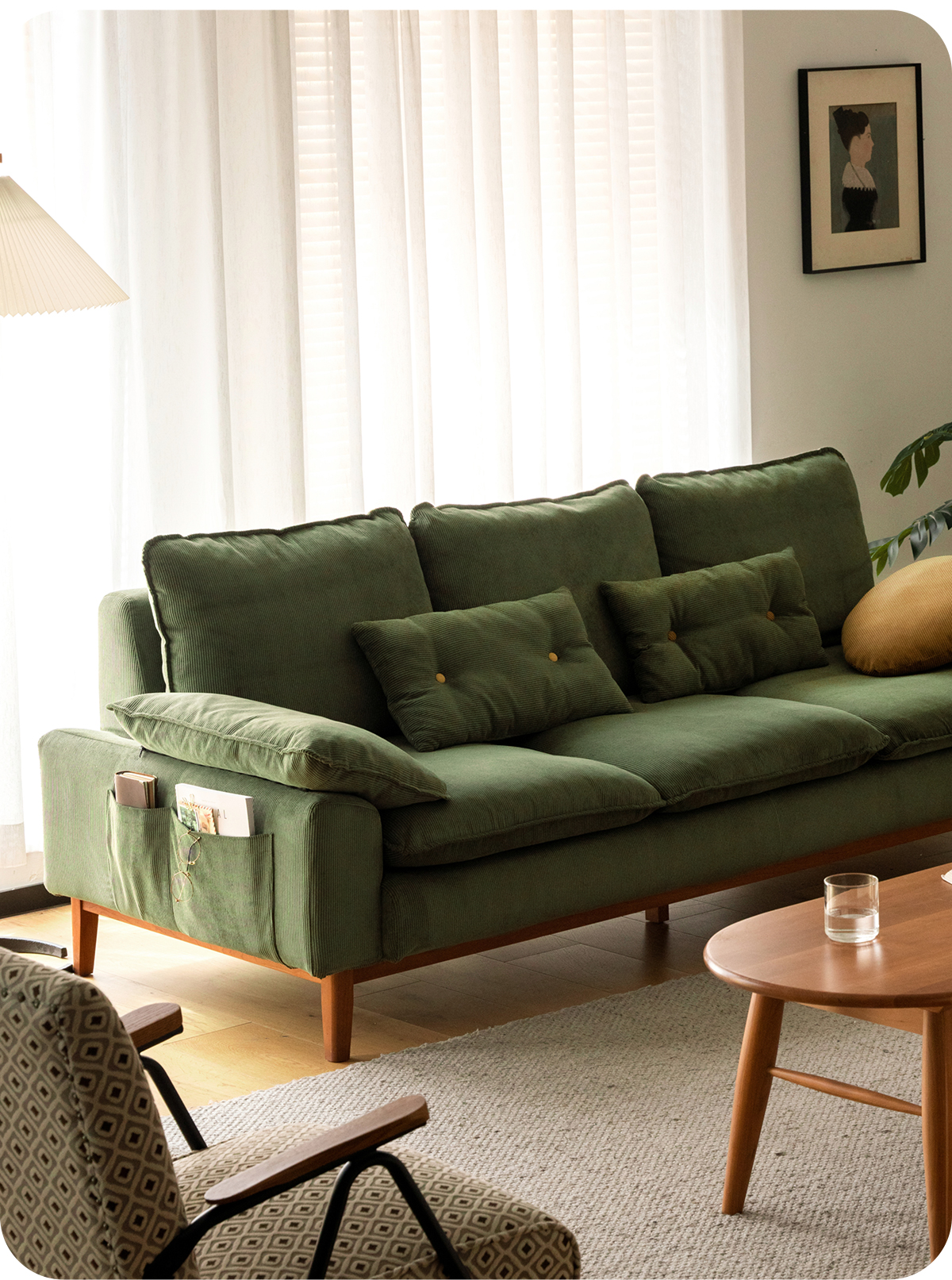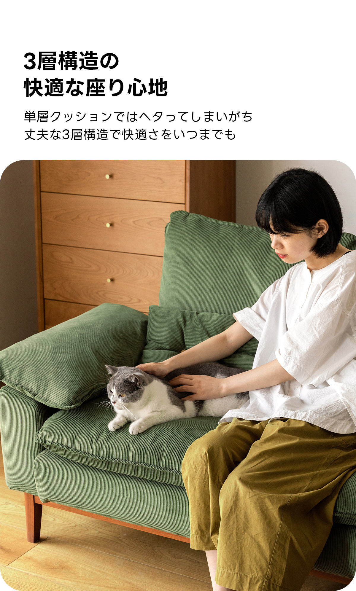 - 【快適な座り心地】コーデュロイクッションソファは、柔らかいコーデュロイ生地と3層構造のクッションを採用し、長時間座っても快適な座り心地を提供します。ウレタン層、ラテックス層、グースダウン層が組み合わさり、理想的なサポートを実現します。