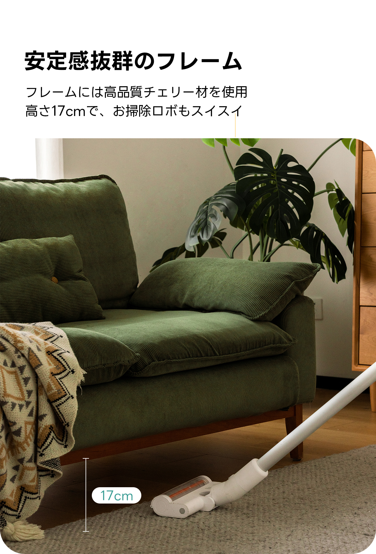 Woody Prime Cherry 洗えるカバー+静音設計コーデュロイクッションソファ【カスタマイズ可】