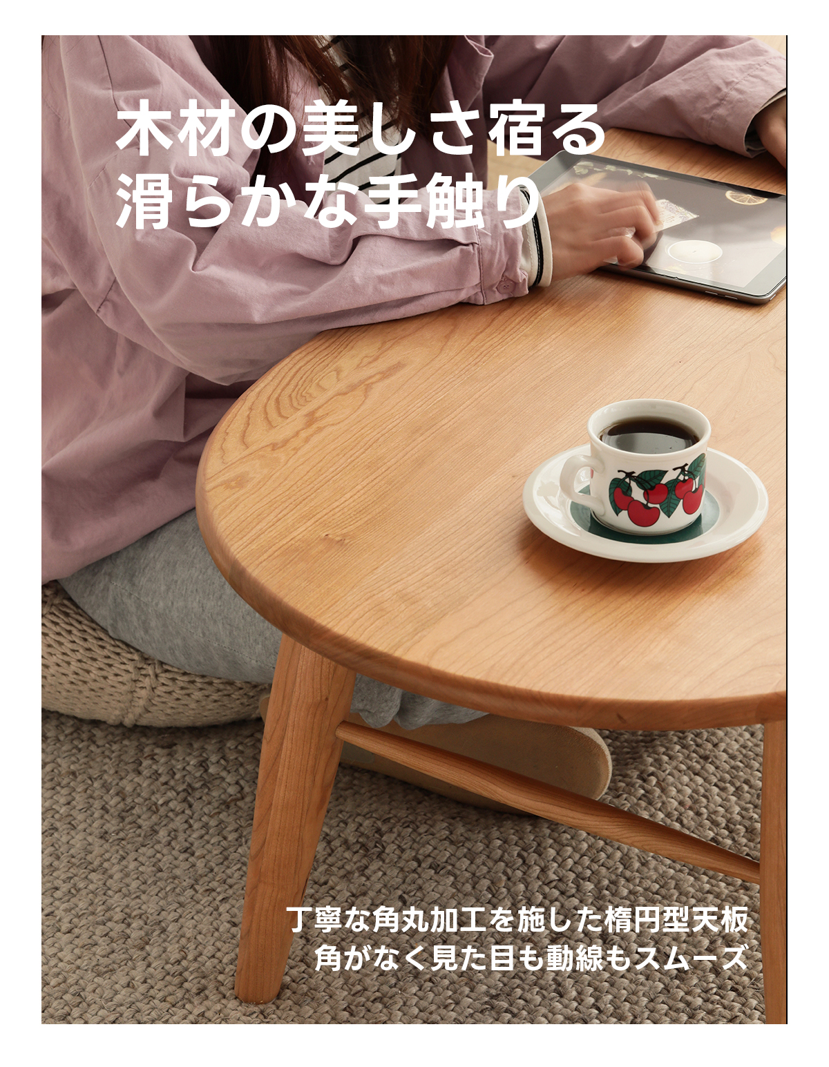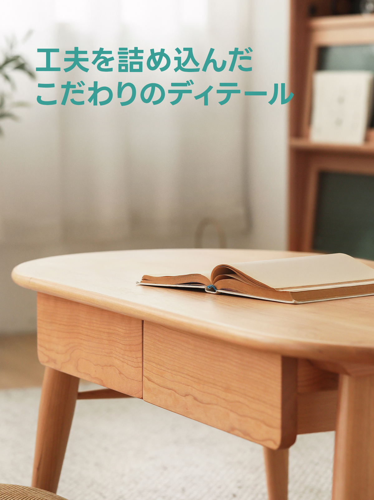 - 【多様な適用シーン】このテーブルは、一人暮らしの方からカップル、ファミリーまで幅広く対応しています。リビングの中心として、またはリモートワークや読書スペースとしても最適です。ナチュラルなデザインがどんなインテリアにも自然に溶け込みます。