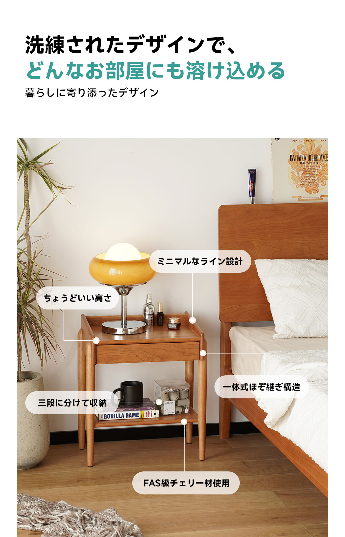 Woody Prime Cherry 引き出し付きナイトテーブル