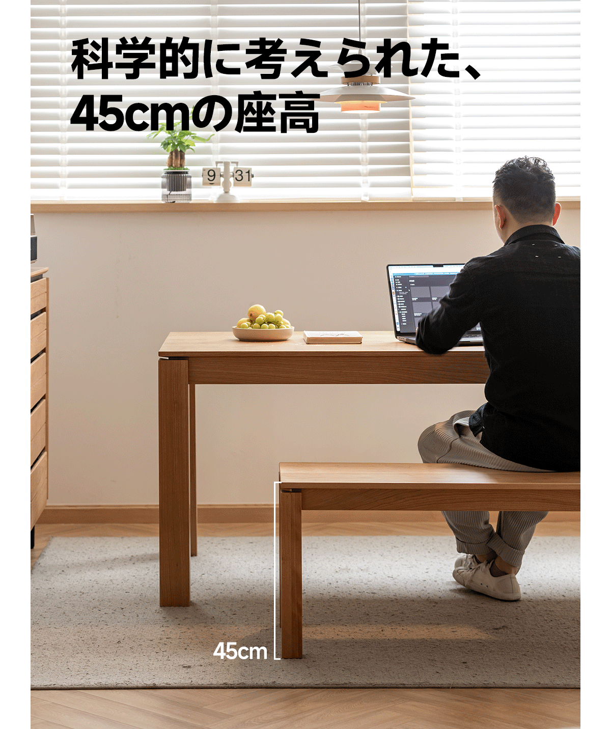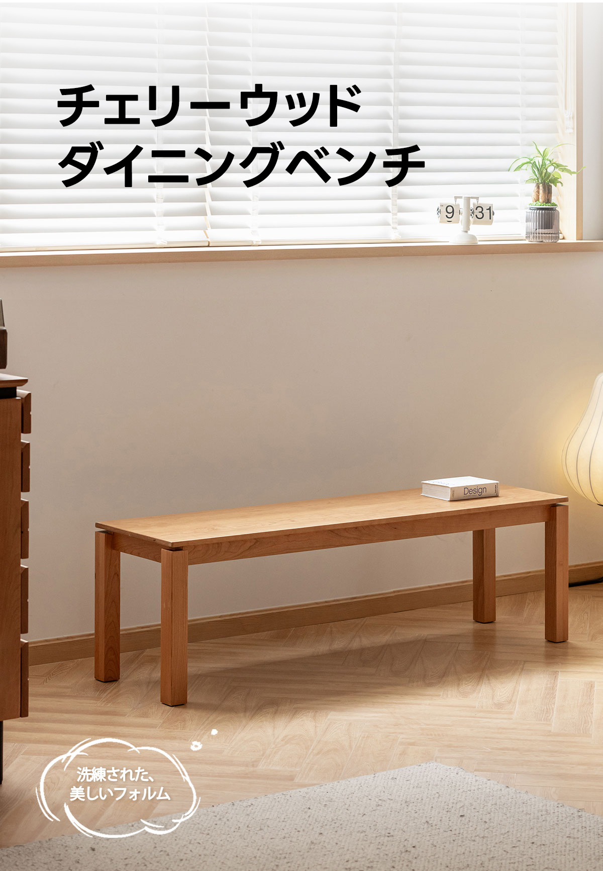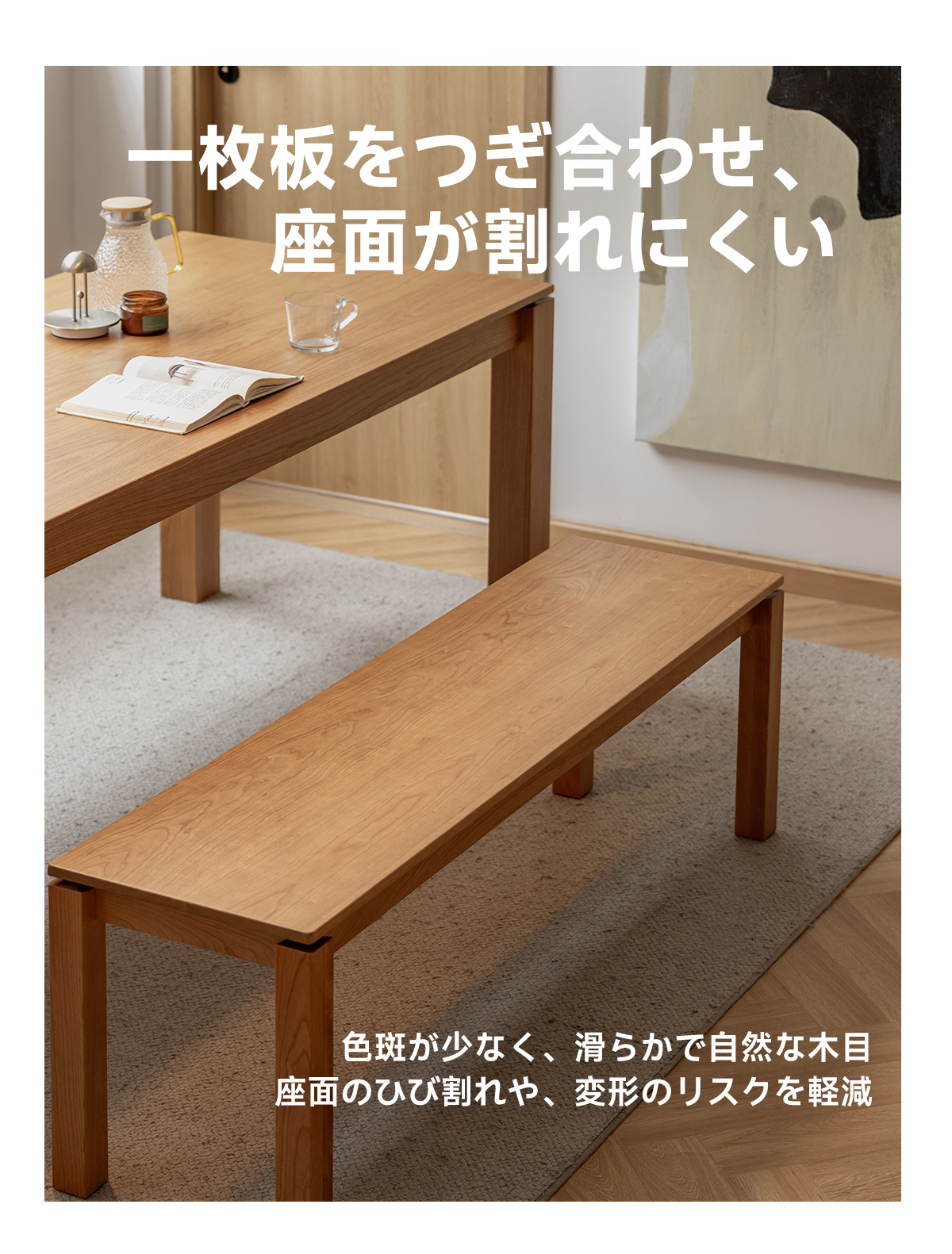 - 【高品質な素材とデザイン】チェリーウッドダイニングベンチは、北米産の高級チェリー材を使用しています。FAS級のチェリー材を採用し、色ムラや節が少なく、自然な木目が美しいです。時間と共に色が深まることで、さらに味わい深い風合いを楽しむことができます。