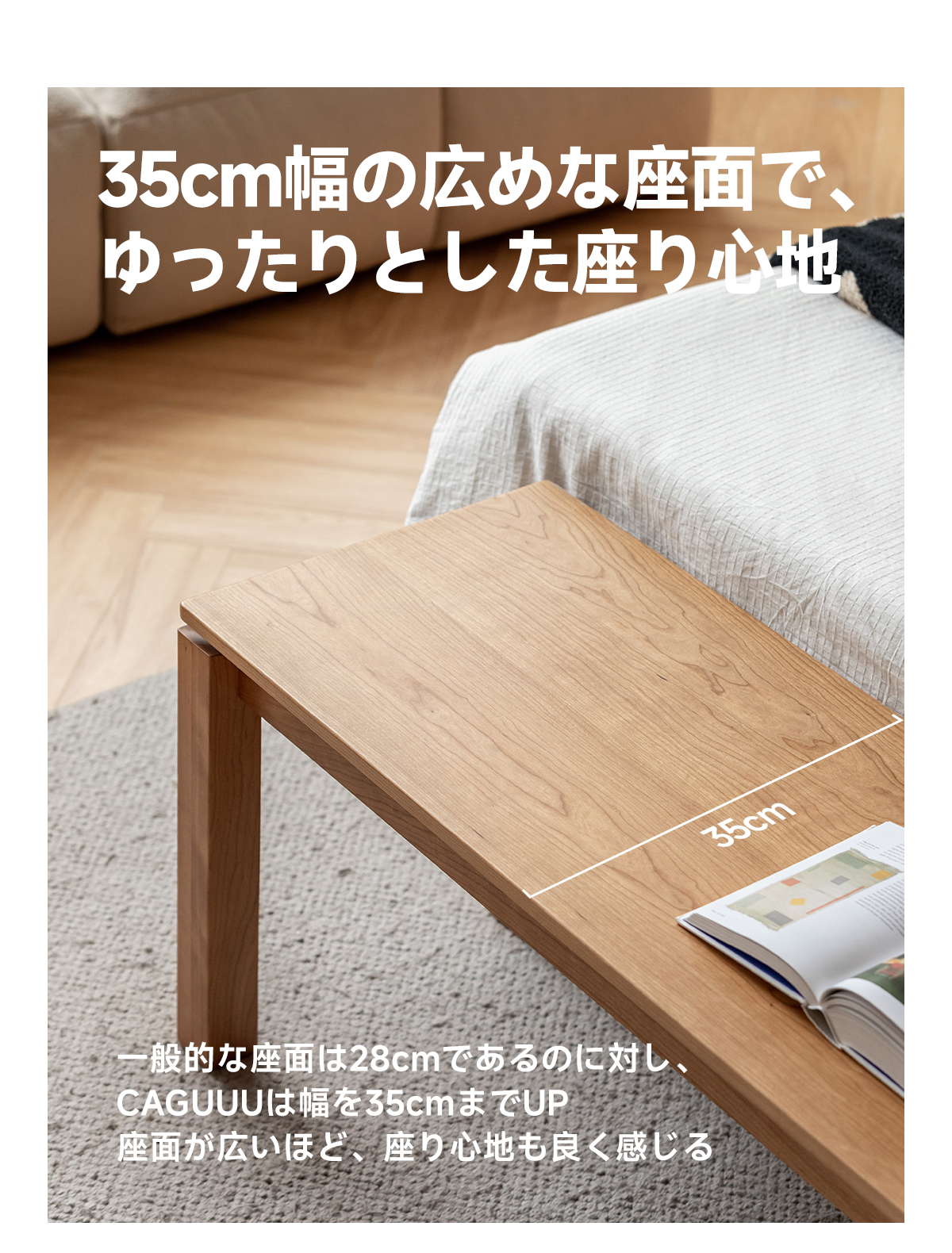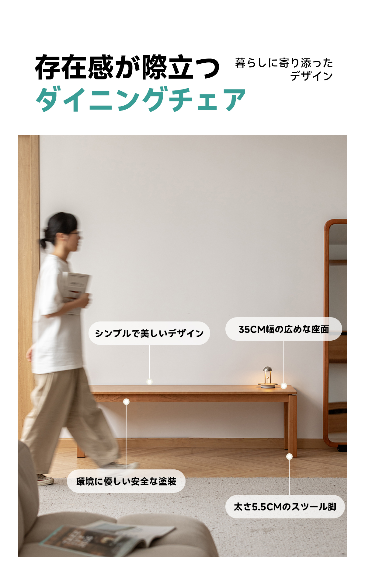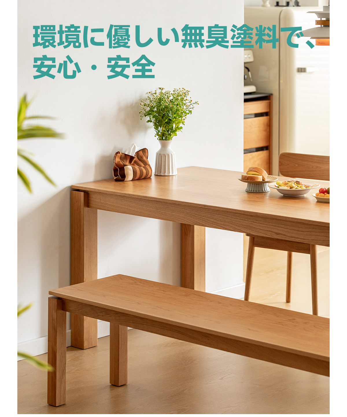 - 【高品質な素材とデザイン】チェリーウッドダイニングベンチは、北米産の高級チェリー材を使用しています。FAS級のチェリー材を採用し、色ムラや節が少なく、自然な木目が美しいです。時間と共に色が深まることで、さらに味わい深い風合いを楽しむことができます。