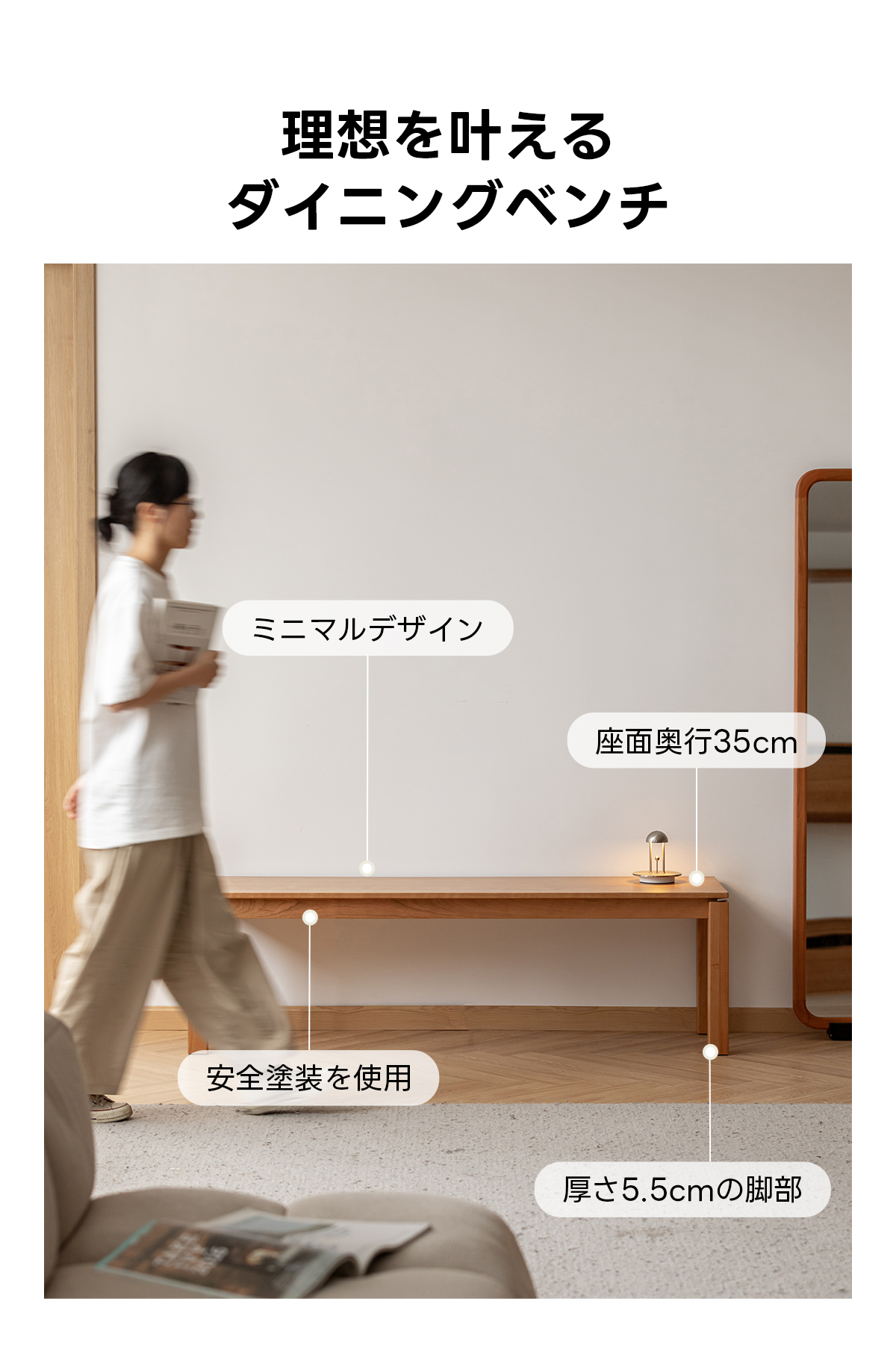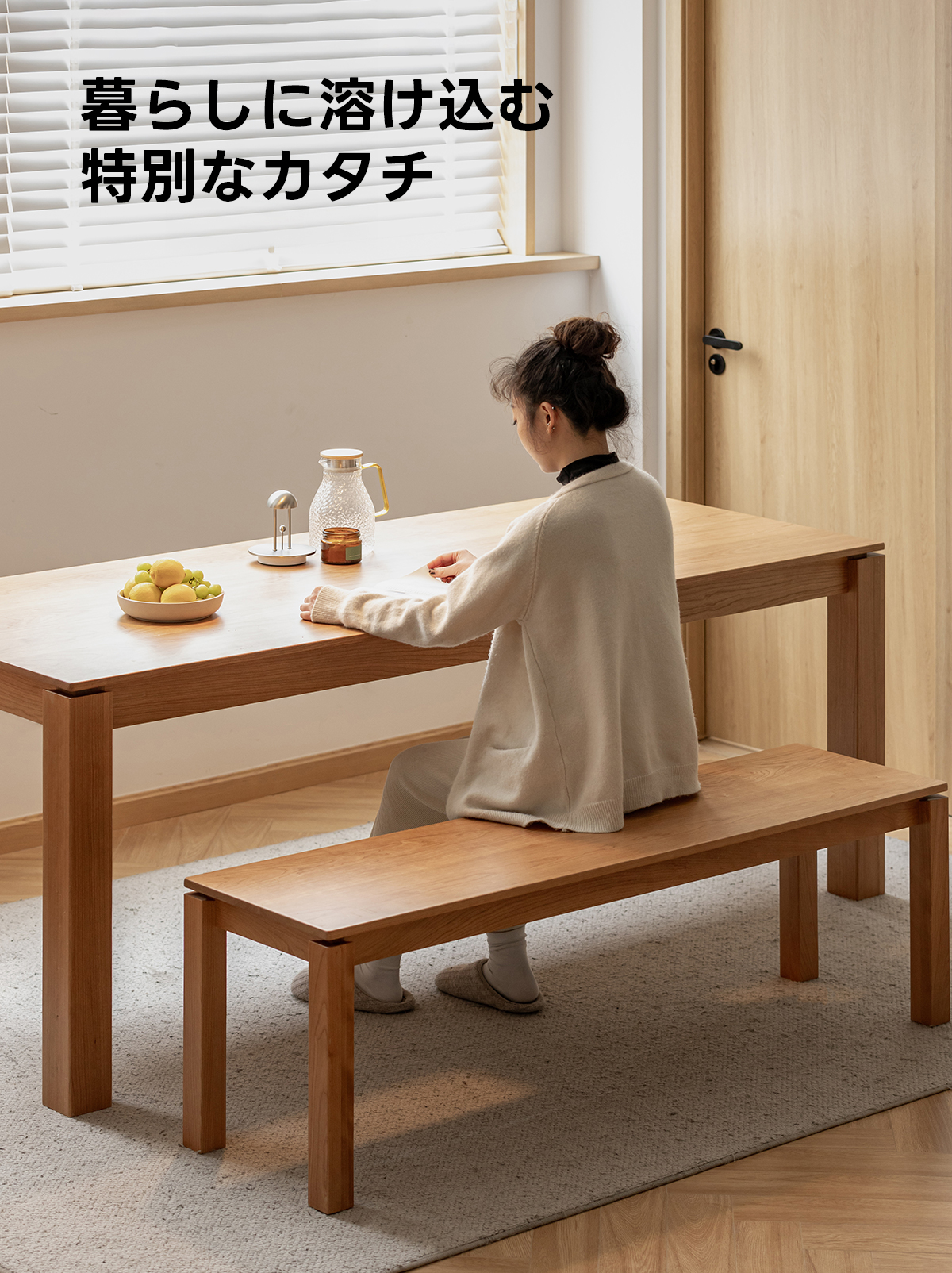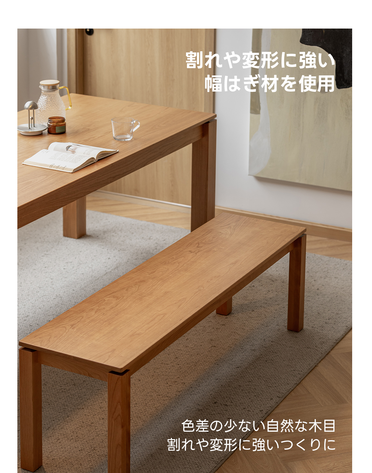 - 【高品質な素材とデザイン】北米産の高級FAS級チェリー材を使用したチェリーウッドダイニングベンチは、自然な木目とライトブラウンの色合いが特徴です。どんなインテリアにも調和し、洗練されたデザインがリビングやダイニングを美しく演出します。