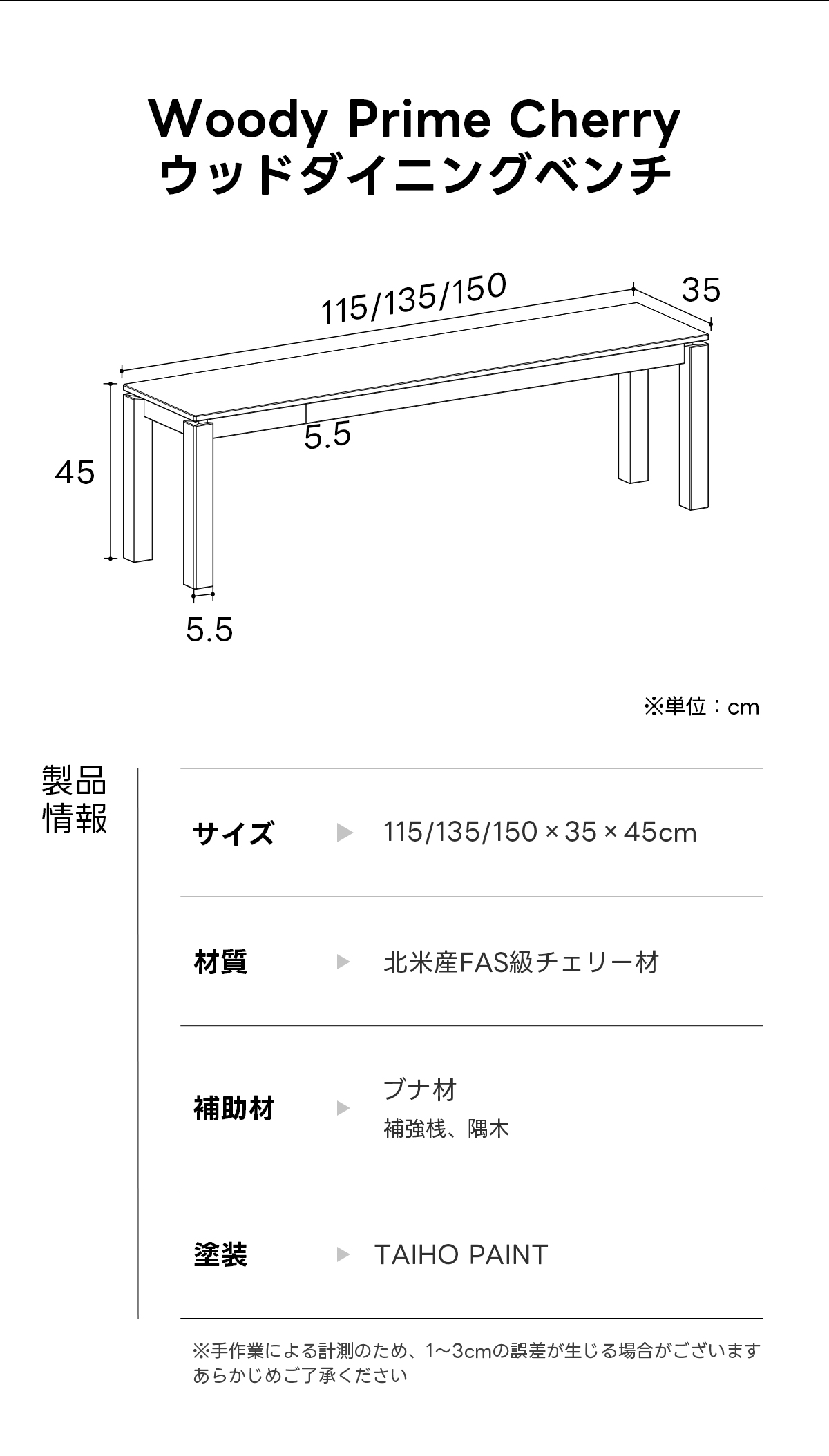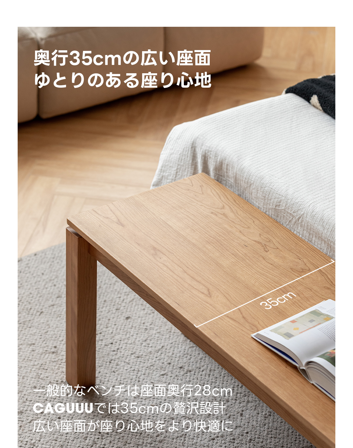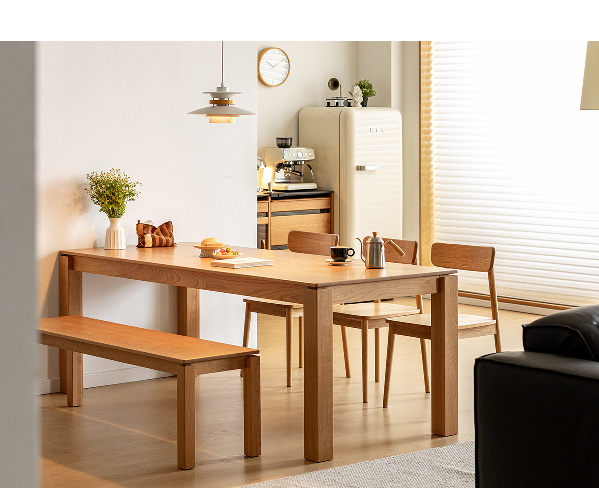 - 【高品質な素材とデザイン】北米産の高級FAS級チェリー材を使用したチェリーウッドダイニングベンチは、自然な木目とライトブラウンの色合いが特徴です。どんなインテリアにも調和し、洗練されたデザインがリビングやダイニングを美しく演出します。