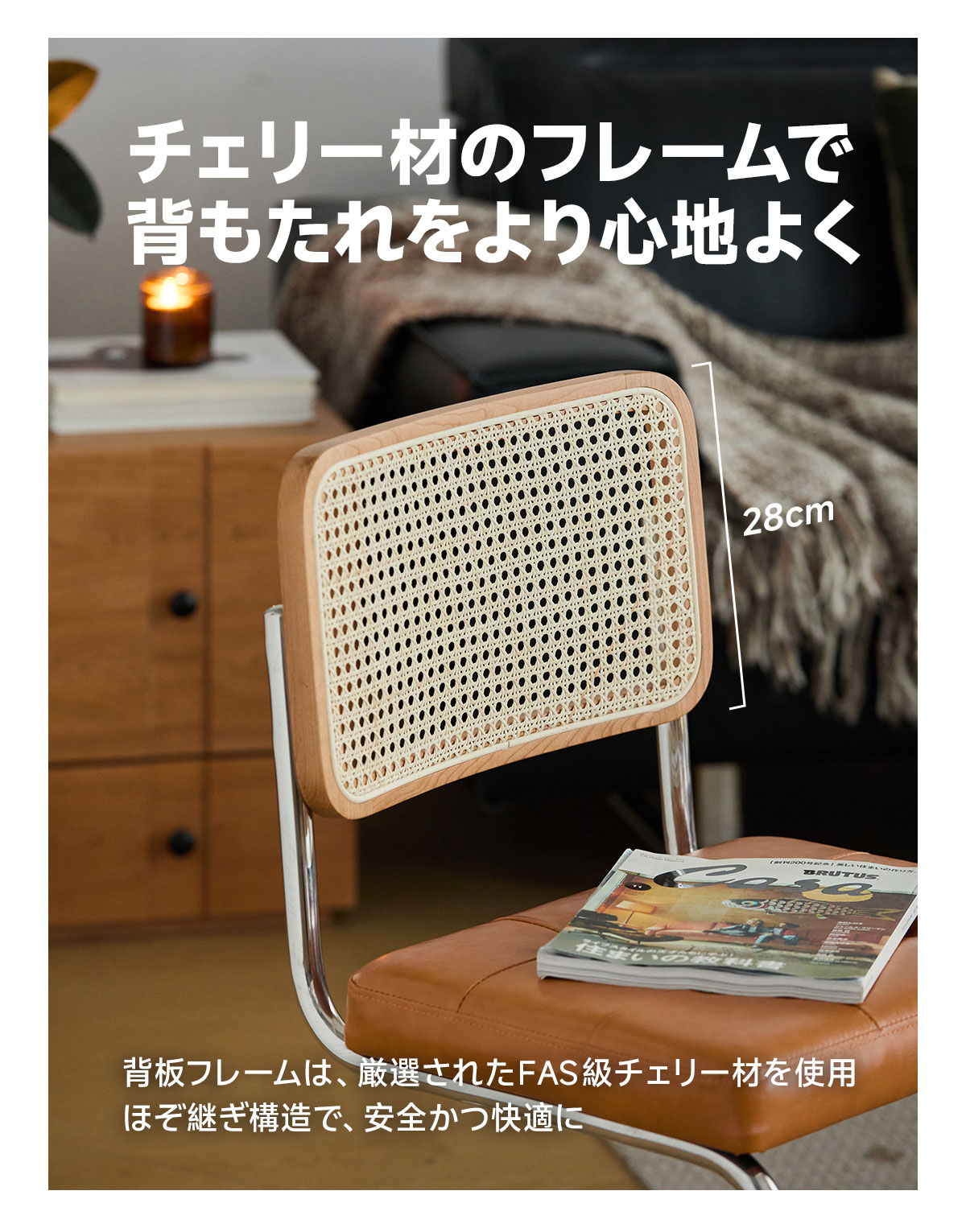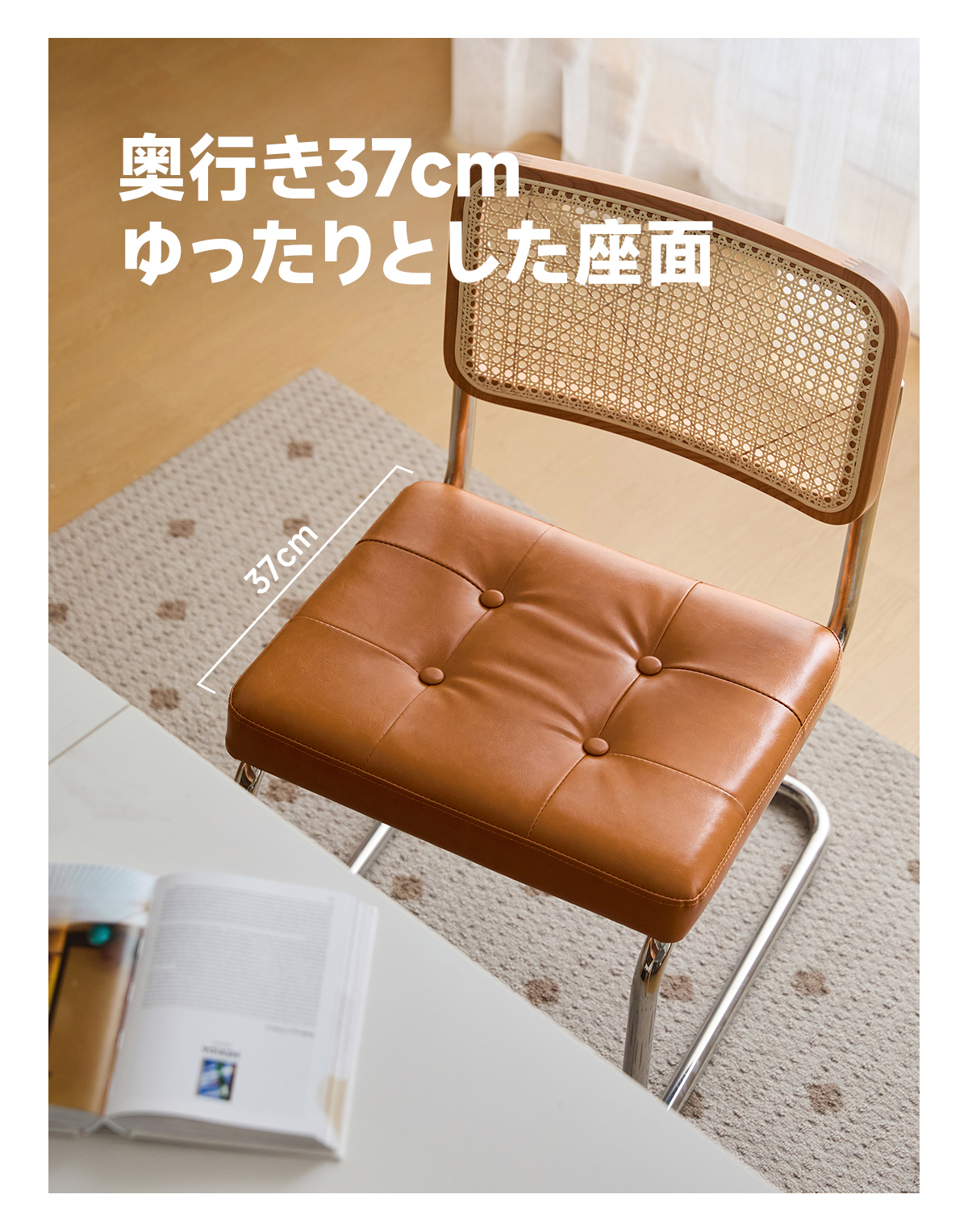- 【快適な座り心地】高弾性ウレタンを使用したPUレザークッションは、長時間座っても疲れにくく、手入れも簡単です。背もたれの高さは40cm、座面の奥行きは37cmで、背中にしっかりフィットし、快適さを追求しています。座面の高さは47cmで、ダイニングテーブルとの相性も抜群です。