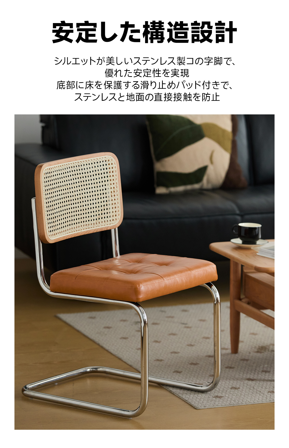 - 【高品質な素材と設計】チェリー材を使用したフレームは、FAS級の北米輸入材で作られており、耐久性と美しさを兼ね備えています。ステンレス製の脚部は滑り止めパッド付きで、床を保護しながら安定性を確保します。異素材ミックスが洗練されたデザインを実現しています。