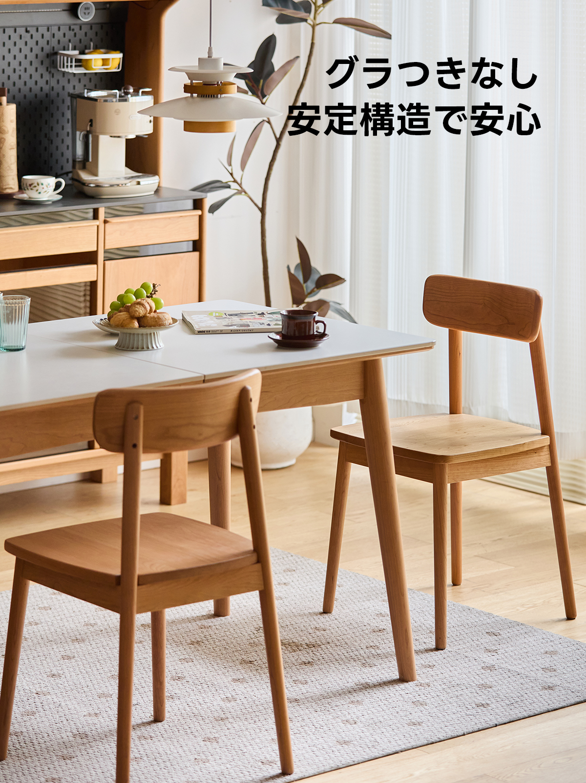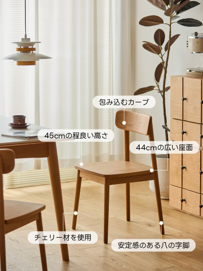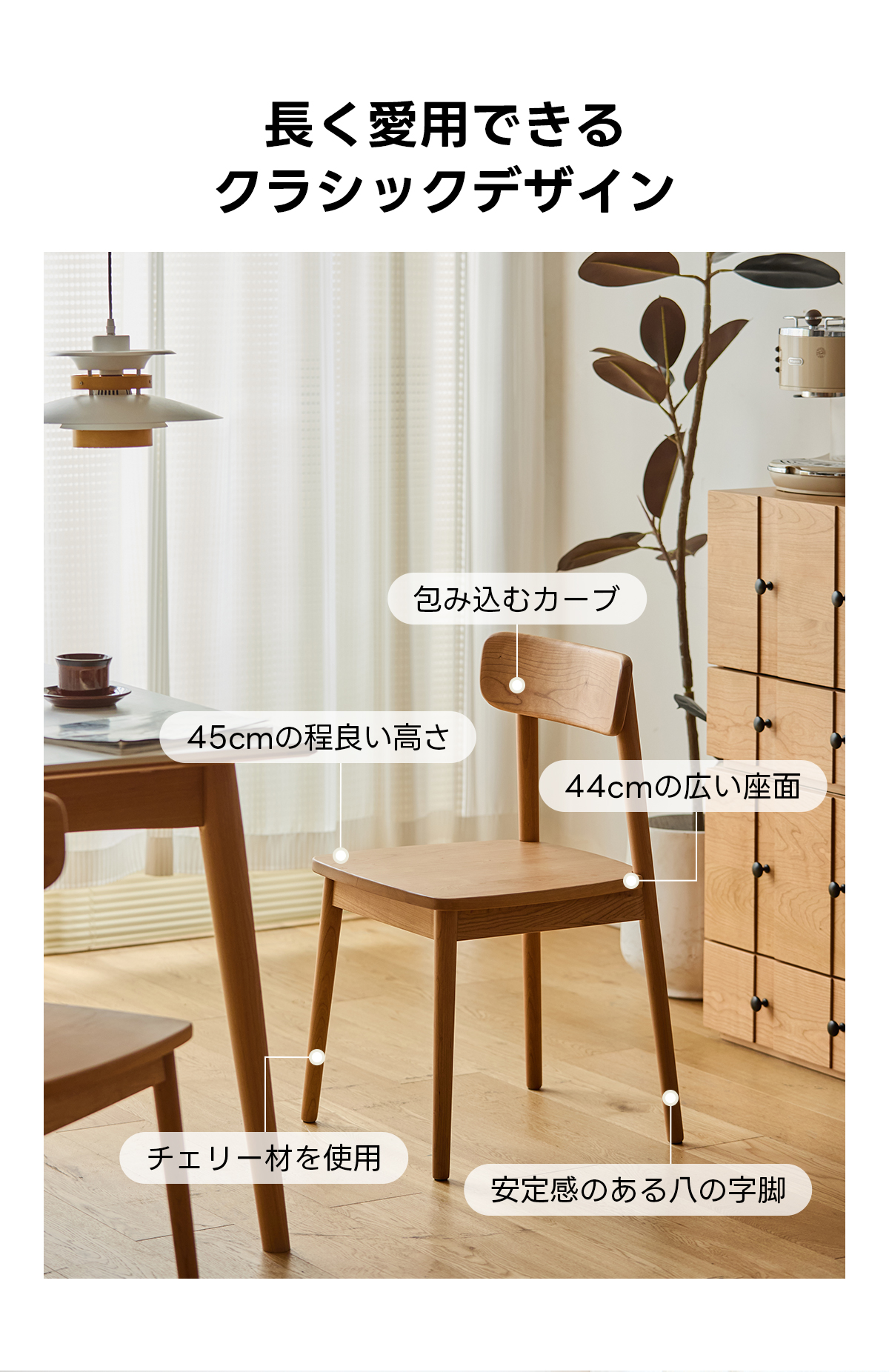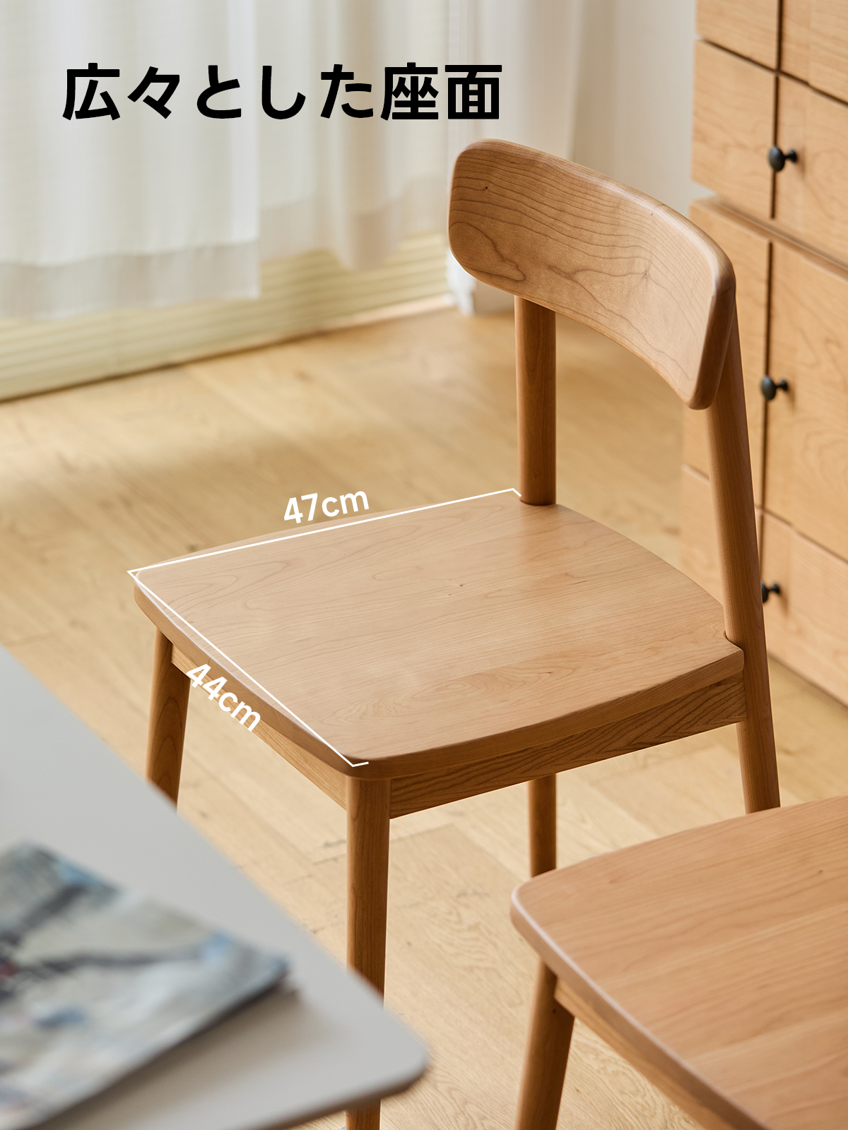 - 【高品質の素材とデザイン】北米産FAS級チェリー材を使用したこのダイニングチェアは、耐久性と美しさを兼ね備えた高級感あふれる逸品です。ナチュラルなライトブラウンの色合いがどんなインテリアにも自然に溶け込みます。