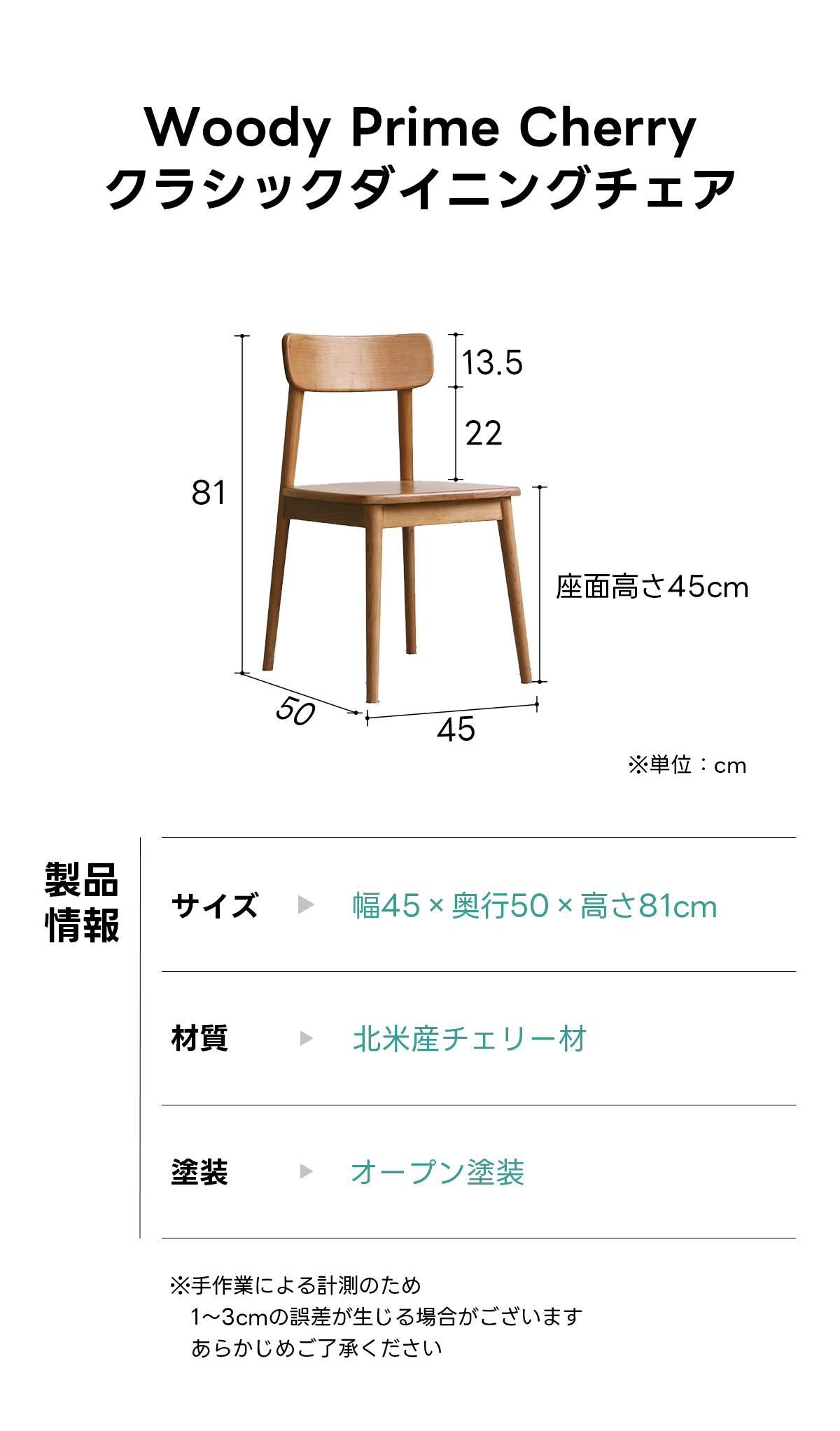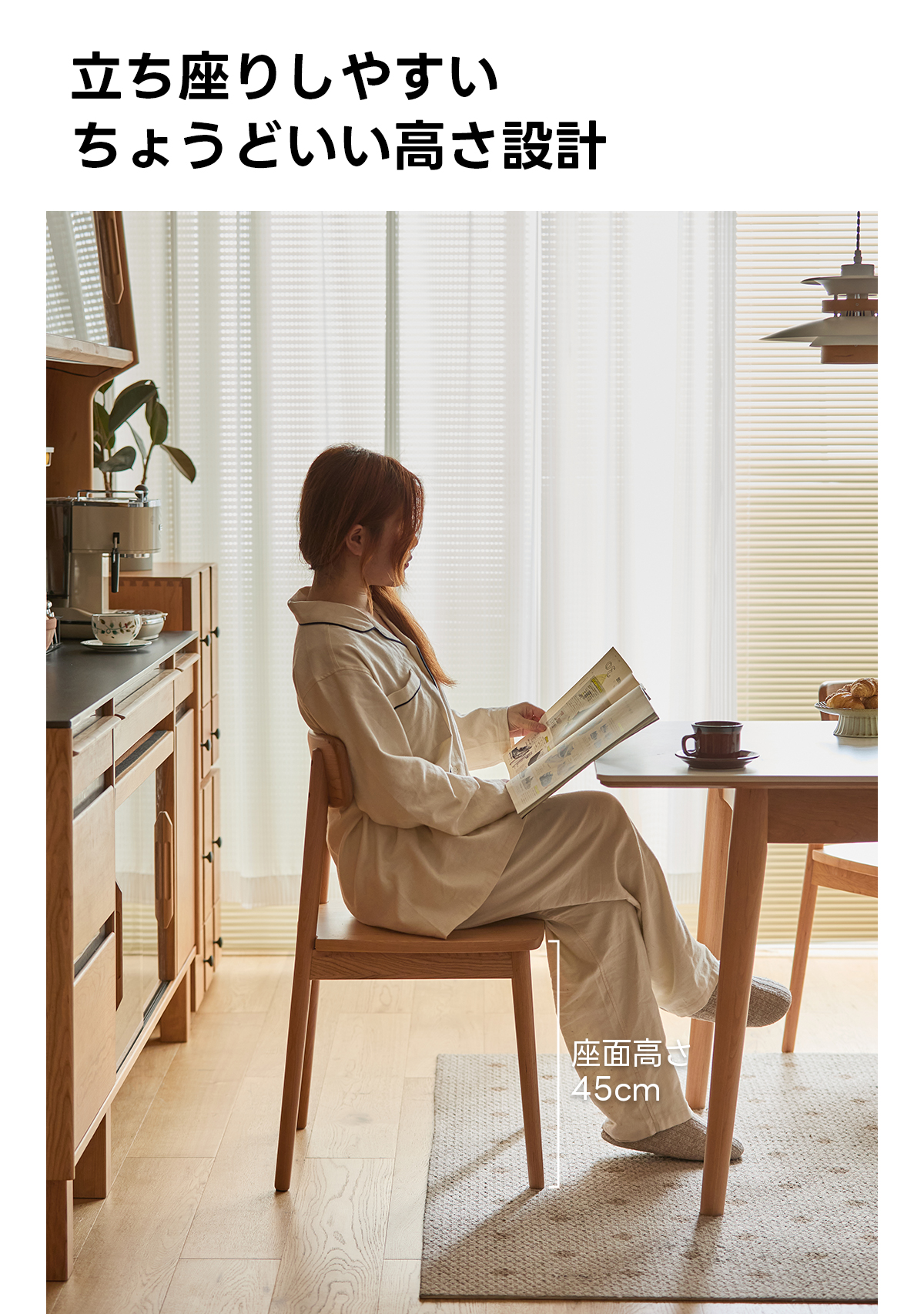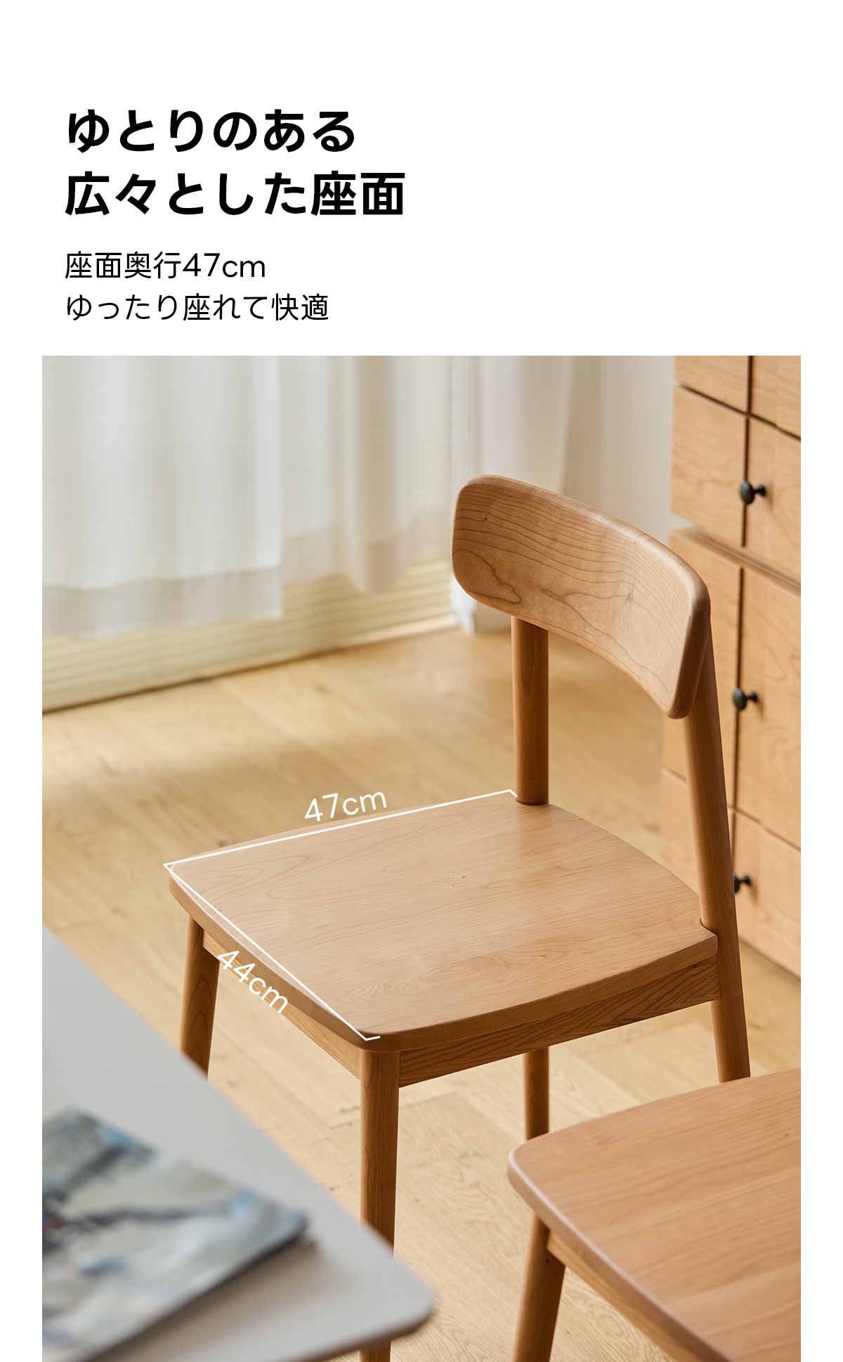 - 【高品質の素材とデザイン】北米産FAS級チェリー材を使用したこのダイニングチェアは、耐久性と美しさを兼ね備えた高級感あふれる逸品です。ナチュラルなライトブラウンの色合いがどんなインテリアにも自然に溶け込みます。