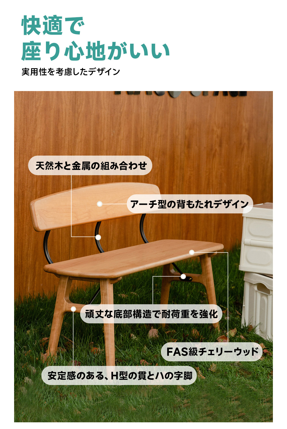 • 【高品質な素材とデザイン】FAS級チェリーウッドを使用し、H型の脚デザインにより圧力を分散し耐荷重が強化されています。頑丈な底部構造で、全体の安定感を高めています。滑らかな磨き仕上げで、肌触りが良く、安全に使用できます。