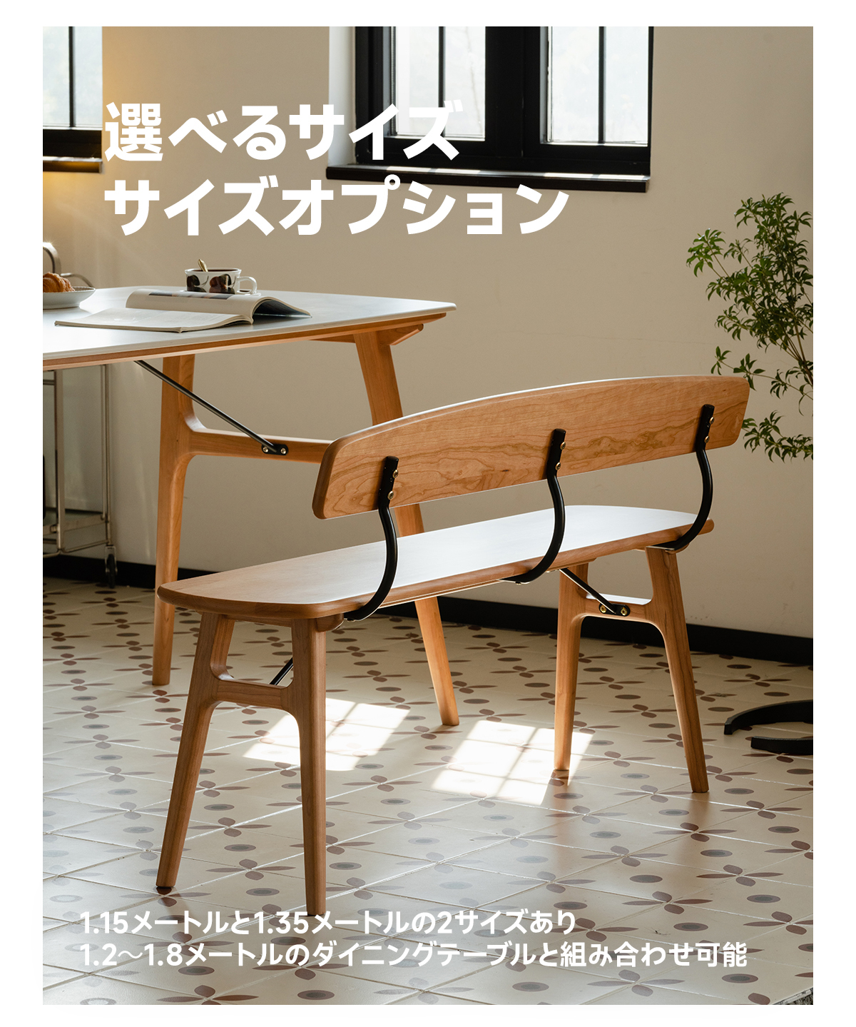 • 【多用途で便利なデザイン】このベンチはダイニングチェアとしてだけでなく、玄関スツールとしても利用可能です。1.15メートルと1.35メートルの2サイズ展開で、様々なダイニングテーブルと組み合わせ可能です。カップルやファミリーに最適なデザインです。