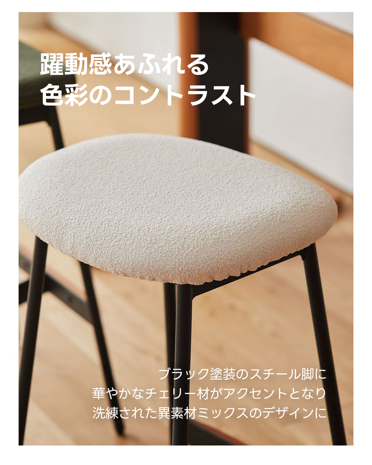 - 【高品質な素材とデザイン】:FAS級の北米産チェリー材とブラック塗装のカーボンスチール脚を使用し、耐久性と美しさを兼ね備えています。異素材ミックスのデザインが空間に華やかさを加えます。
