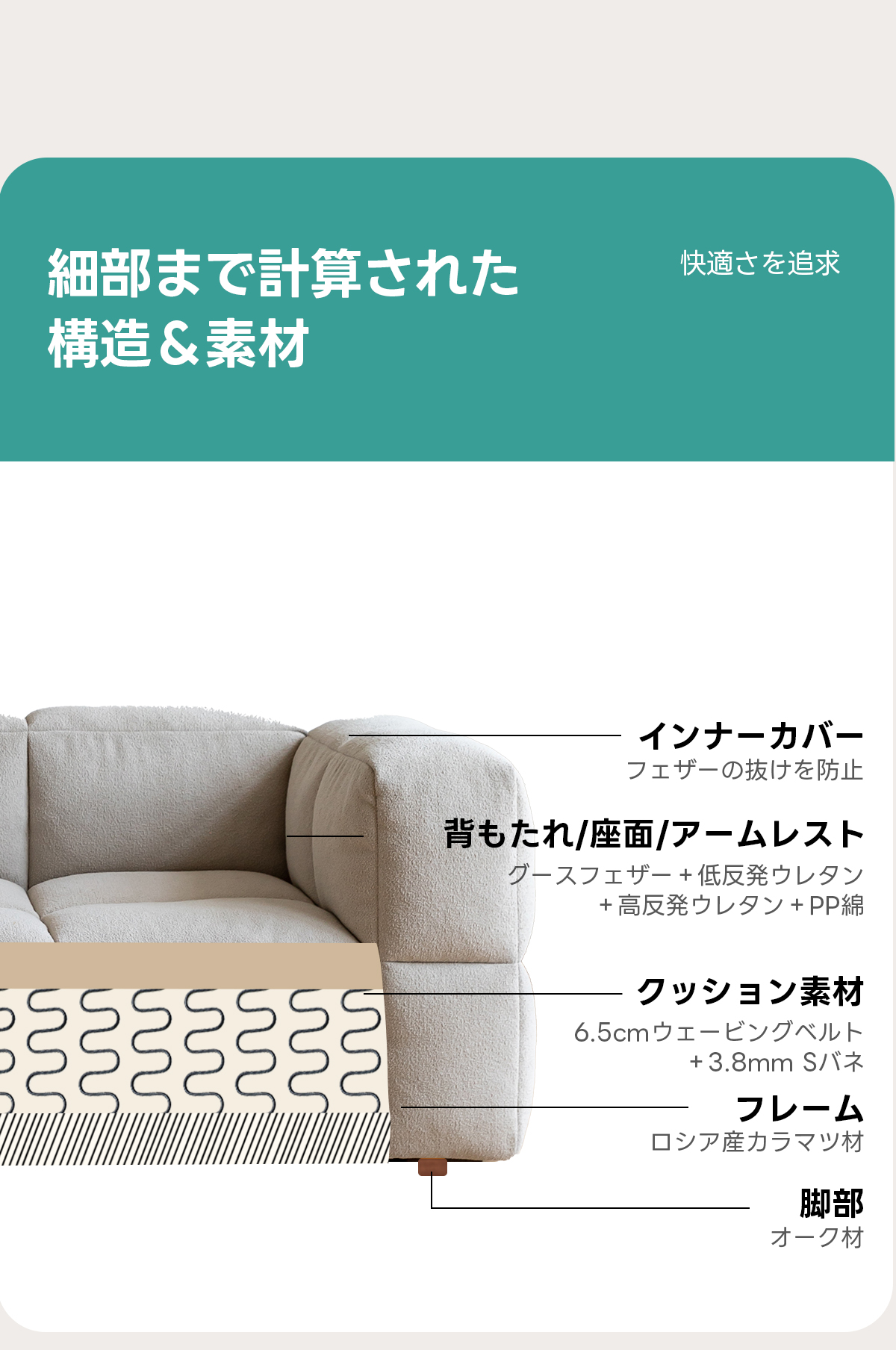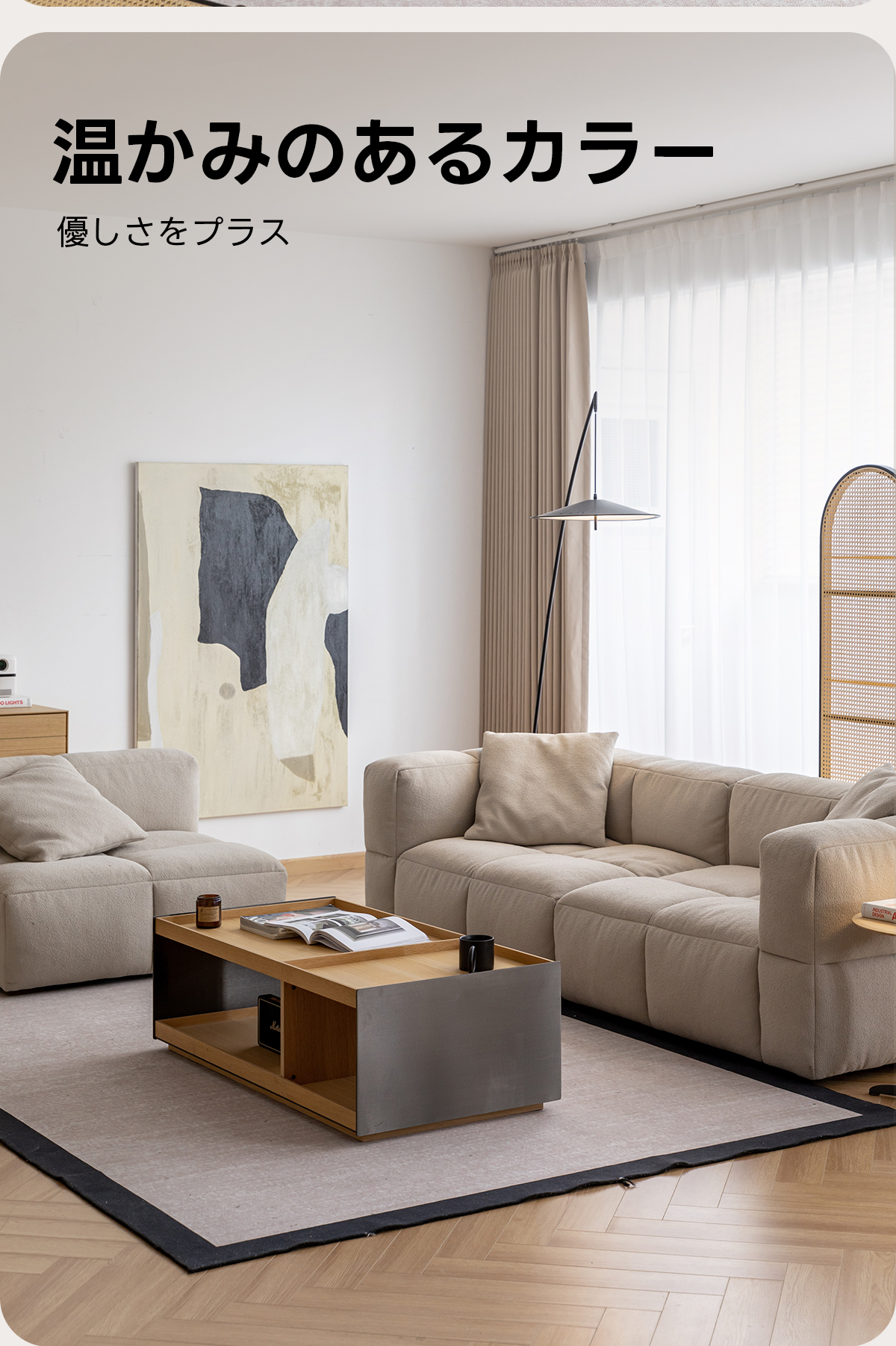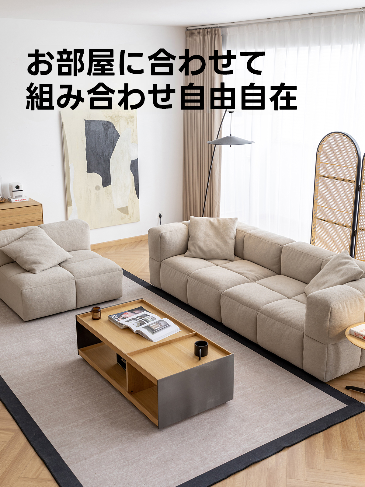 - 【高品質なファブリック素材】:北欧風のファブリック素材を使用し、高級感と耐久性を兼ね備えています。ベージュとホワイトの色合いが、空間を明るく演出します。
