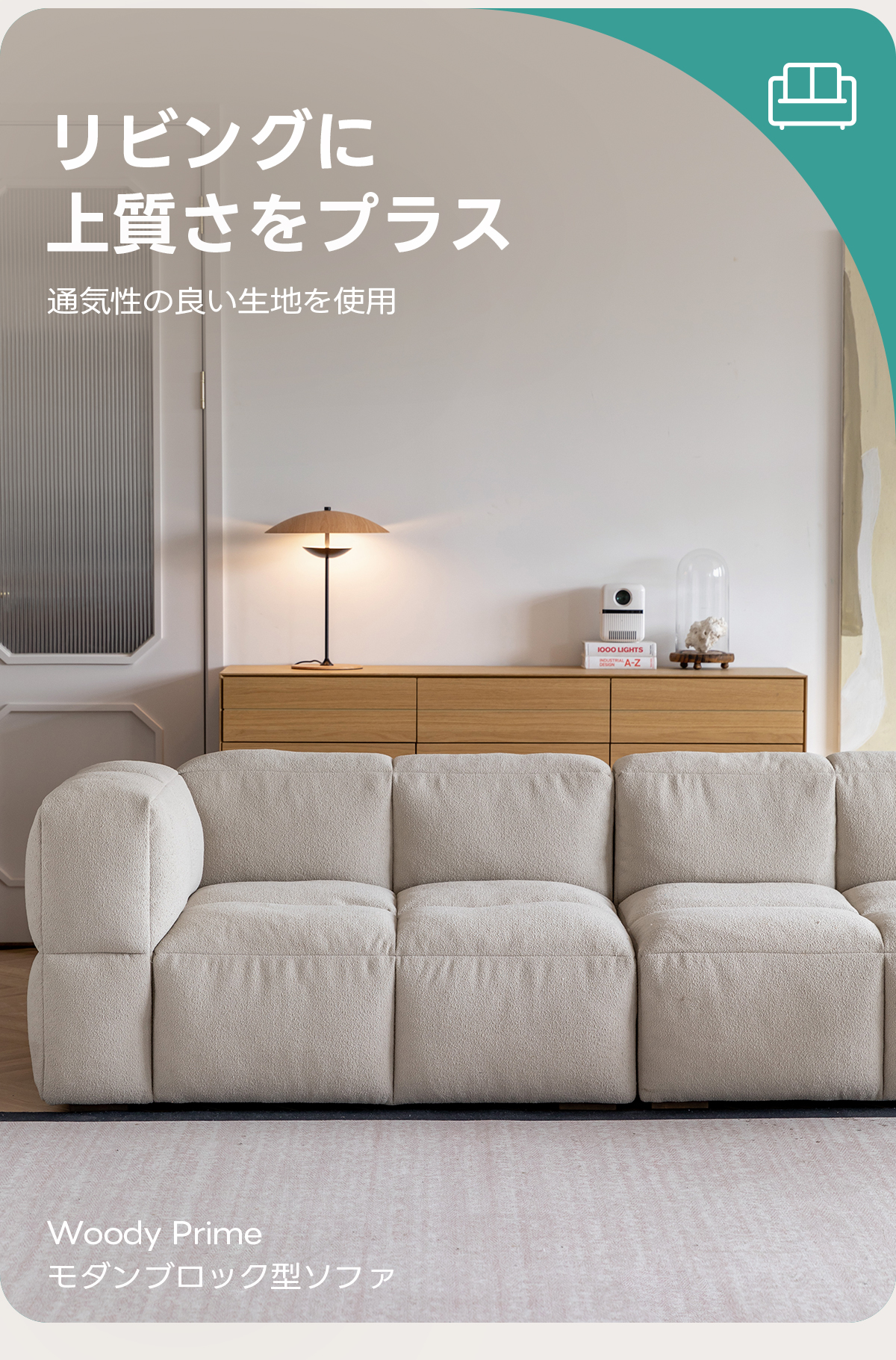 色と生地が選べるブロックデザインソファ【カスタマイズ可】