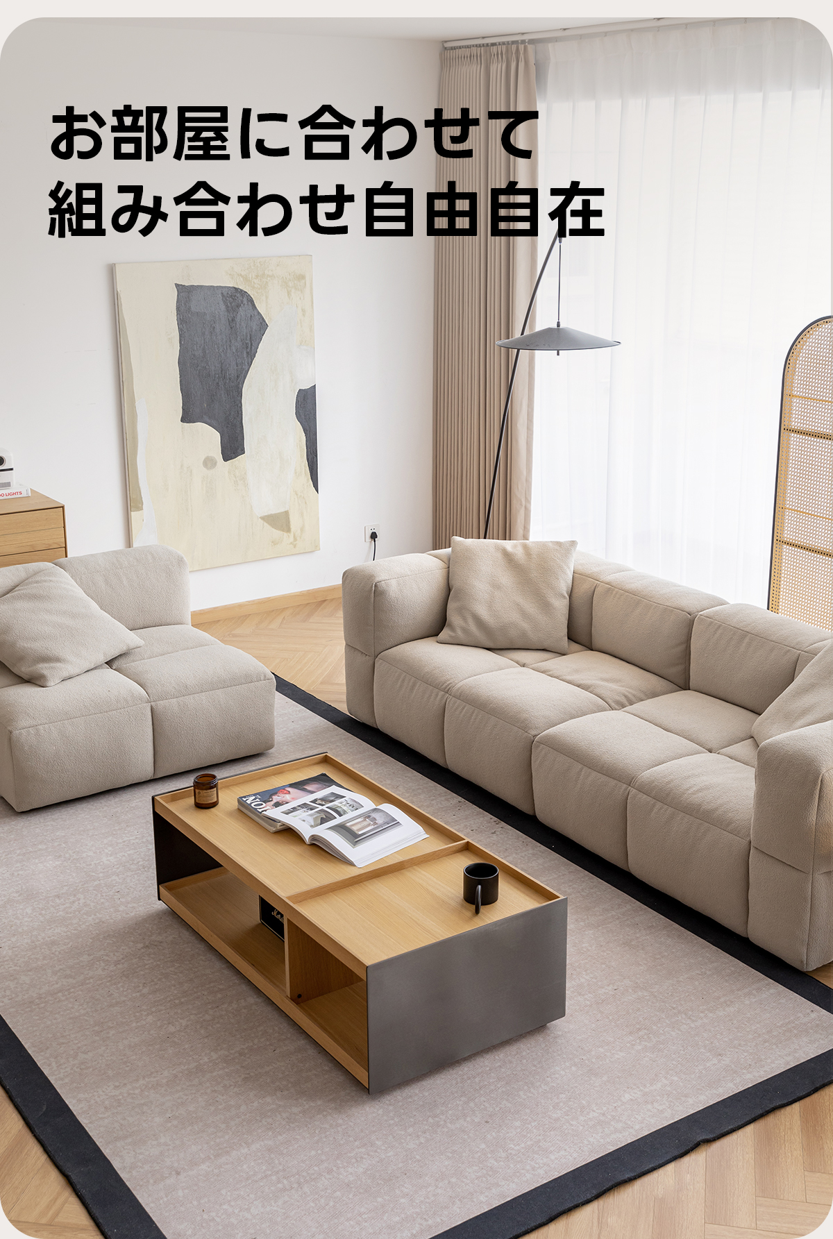 - 【カスタマイズ可能なモダンソファ】:このソファはカスタマイズ可能で、あなたのライフスタイルにぴったりとフィットします。シンプルモダンなデザインで、どんなインテリアにも調和します。