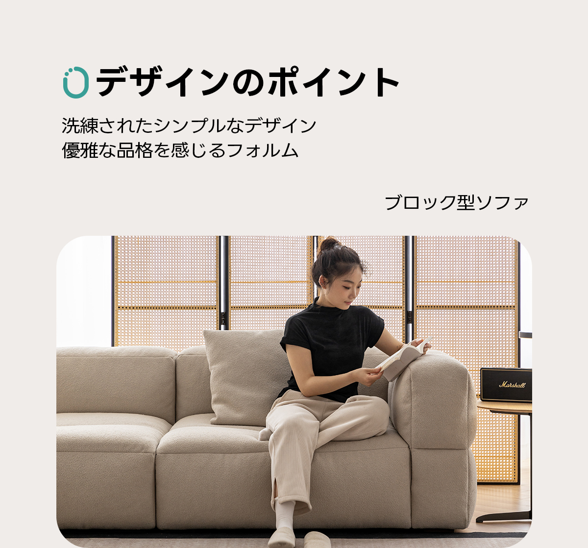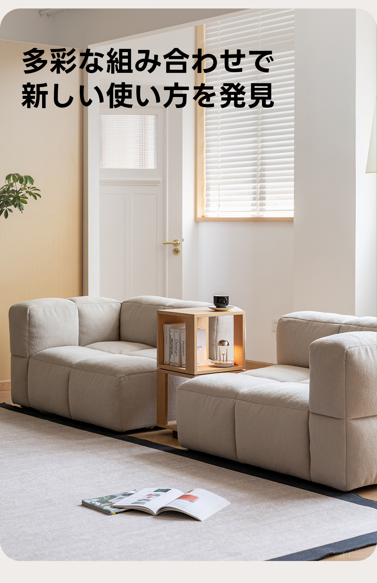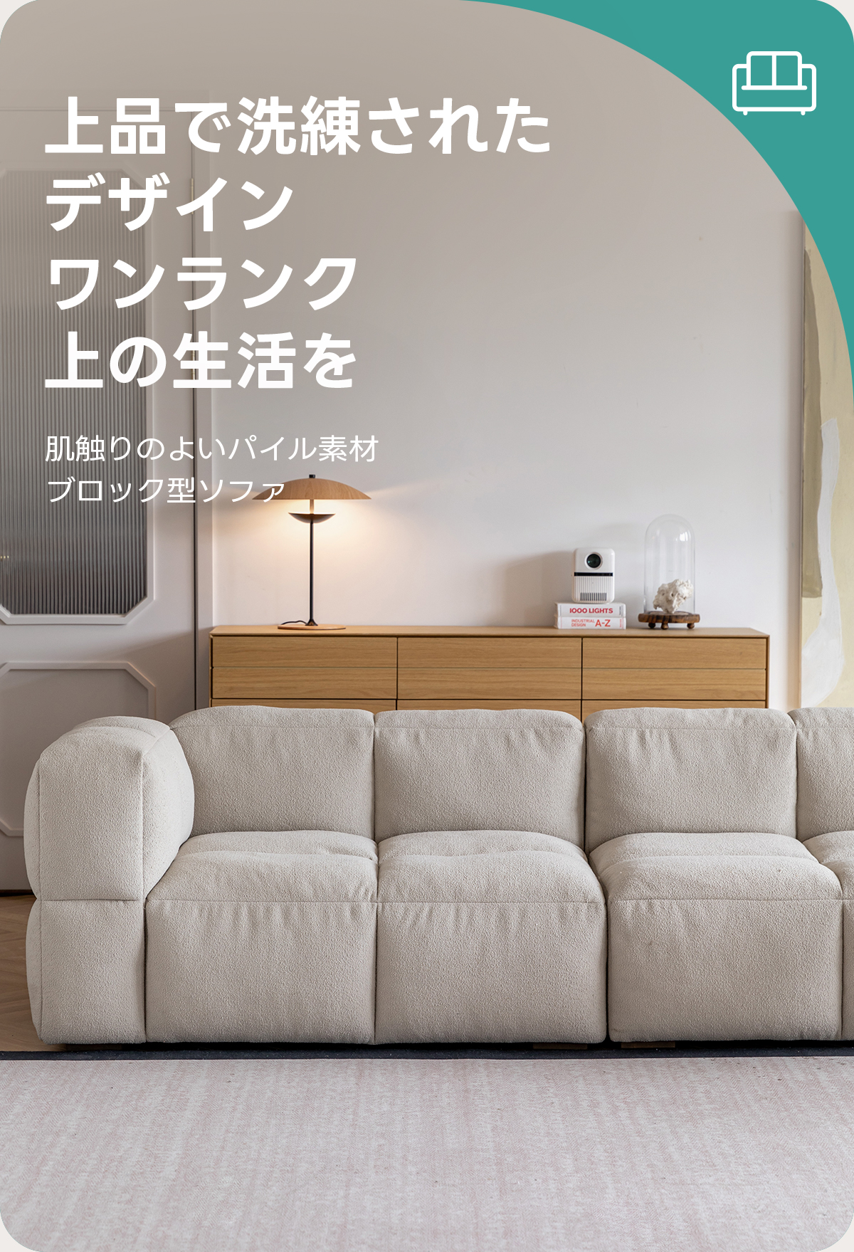 - 【カスタマイズ可能なモダンブロック型ソファ】:このソファは、サイズや色、素材を自由に選べるカスタマイズが可能です。自分だけのオリジナルソファを作成でき、どんなリビングにもぴったりフィットします。