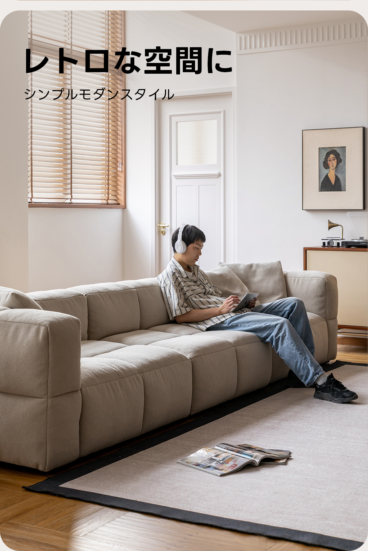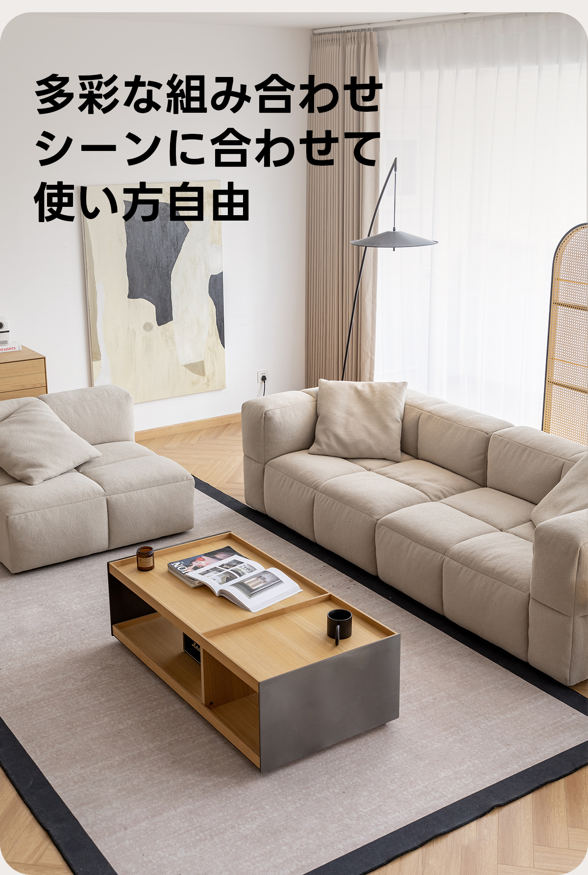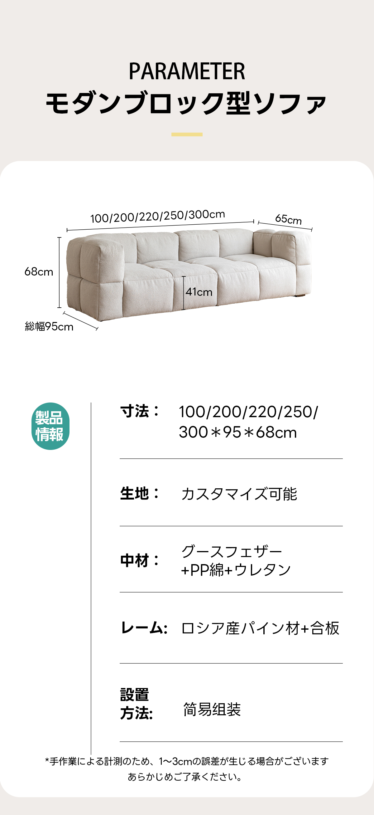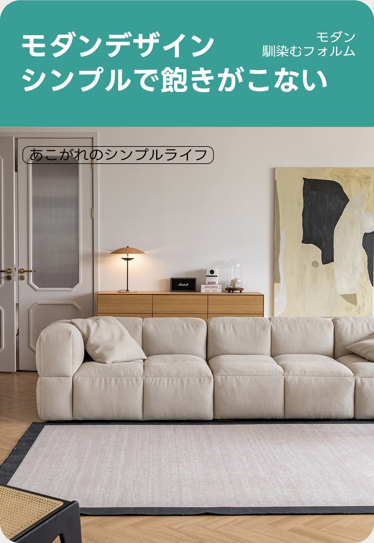 - 【カスタマイズ可能なモダンブロック型ソファ】:このソファは、サイズや色、素材を自由に選べるカスタマイズが可能です。自分だけのオリジナルソファを作成でき、どんなリビングにもぴったりフィットします。