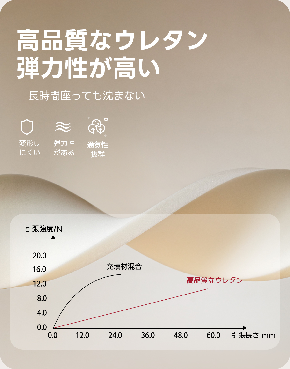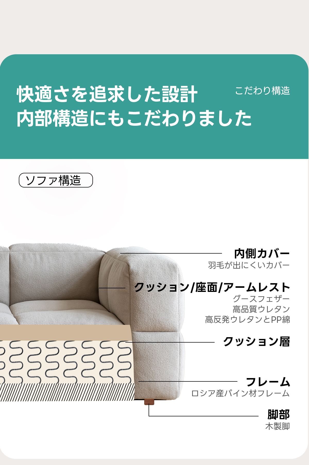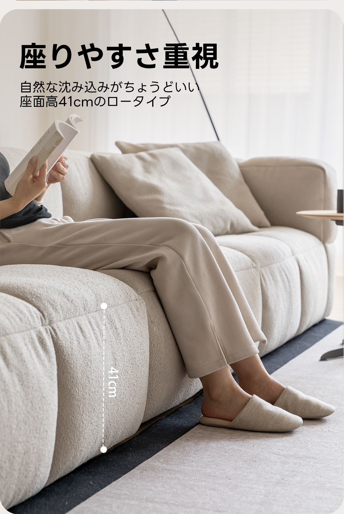 - 【快適な座り心地】:4層のクッション構造により、圧力を分散し、長時間座っても疲れにくい設計。65cmの奥行きがあり、くつろぎの時間を提供します。
