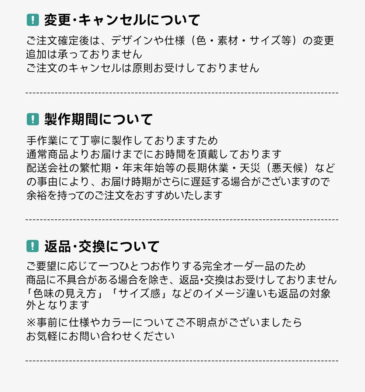 ※オーダーメイド商品のため、通常の商品よりもお届けにお時間をいただく場合がございます。あらかじめご了承ください。