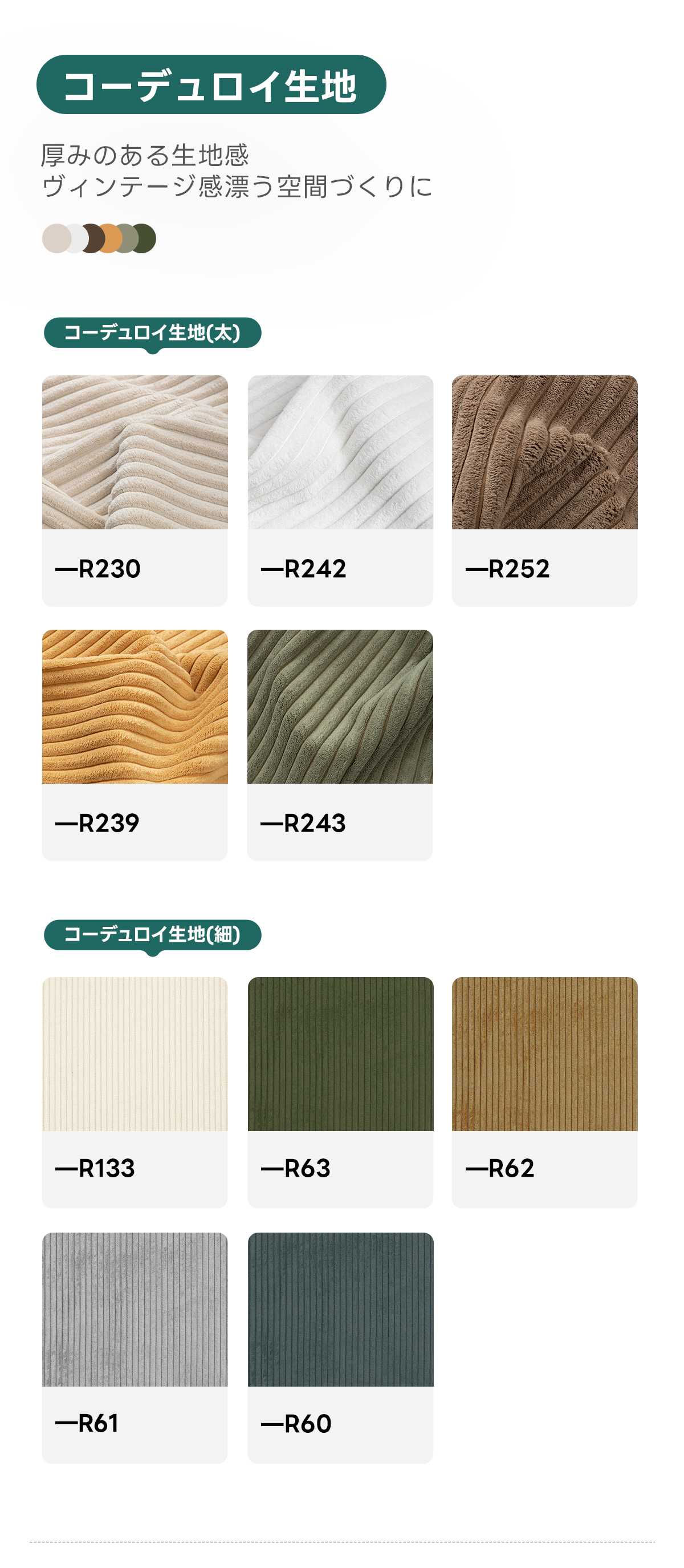 - 【カスタマイズ可能な選択肢】:多様な生地とカラーオプションから、お好みに合わせて選べます。マイクロファイバー、ブークレ生地、シェニール織、ベルベッド生地、洗いざらし生地など、豊富な選択肢があります。