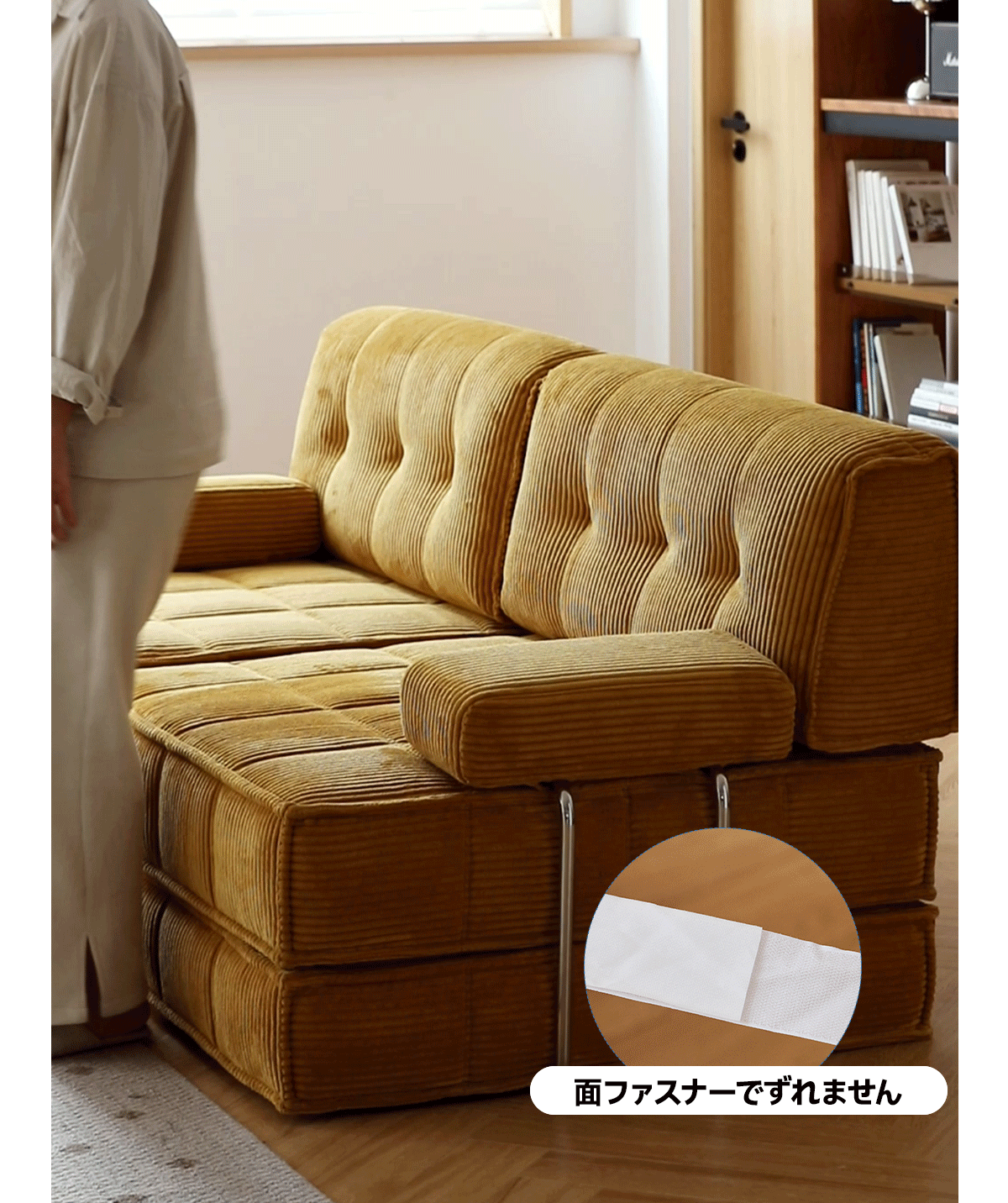 - 【カップルやファミリーに最適】:コンパクトな設計でありながら、組み立て式のため、カップルやファミリー、一人暮らしの方にも最適です。イエローのコーデュロイ生地が、リビングに暖かみを与え、どんなインテリアにも調和します。多様なサイズ展開で、リビングのスペースに合わせて選べます。