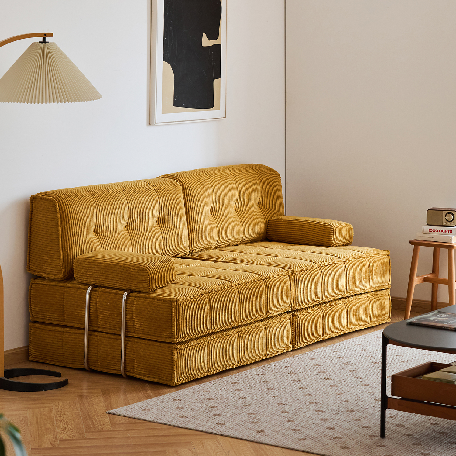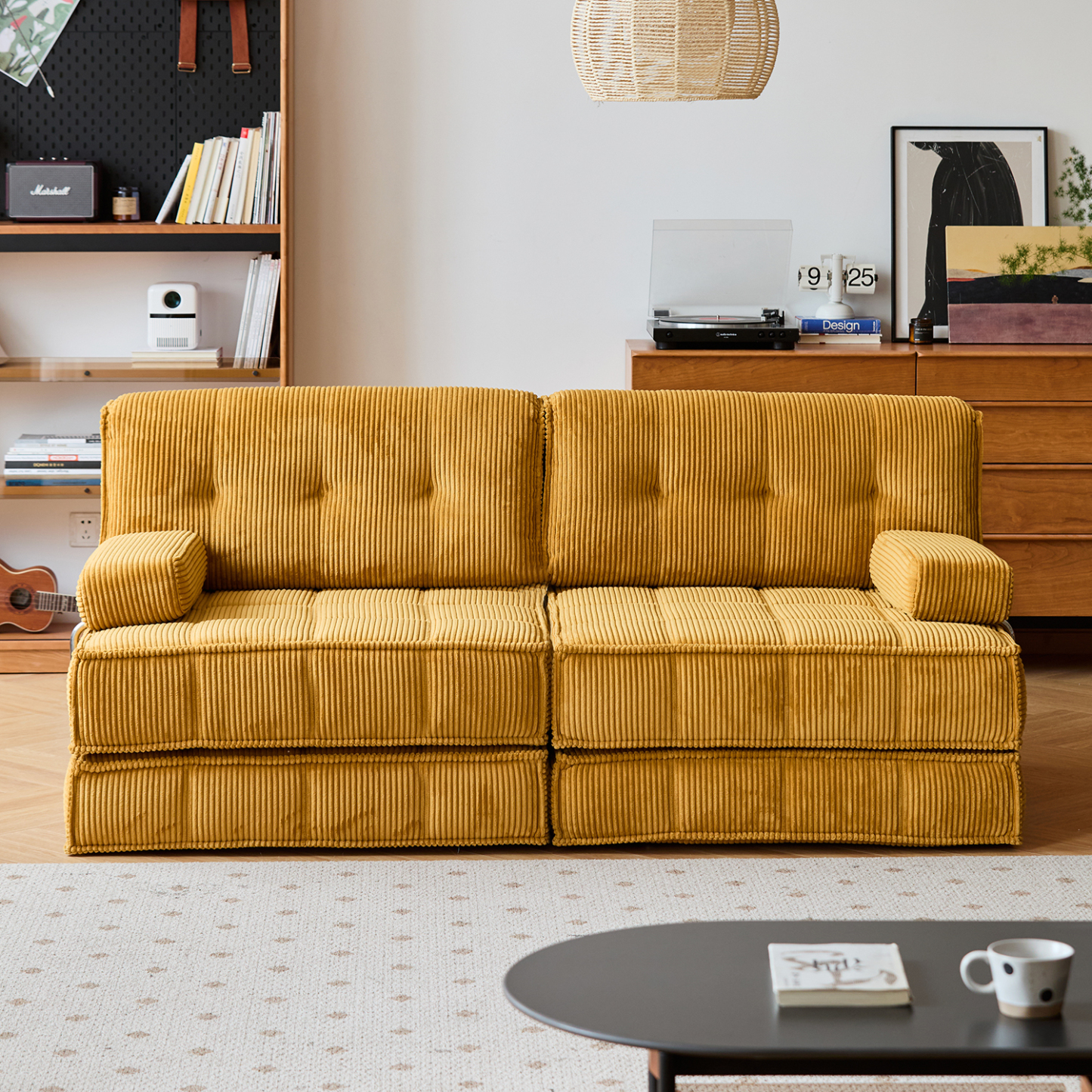 耐摩耗性コーデュロイ生地レトロ調ユニットソファ