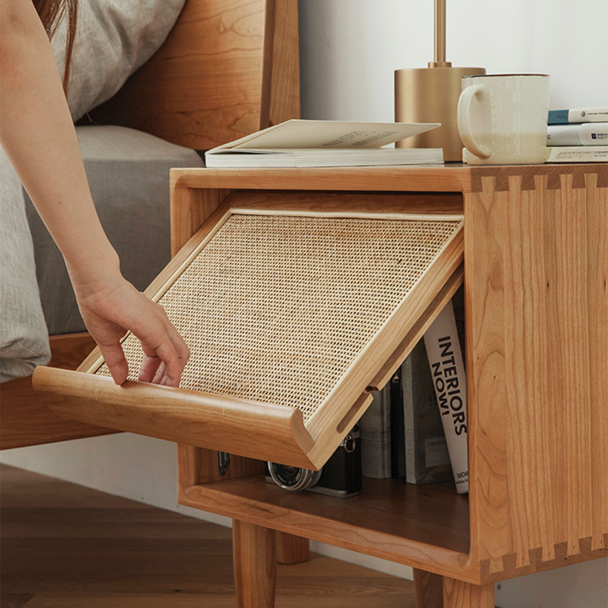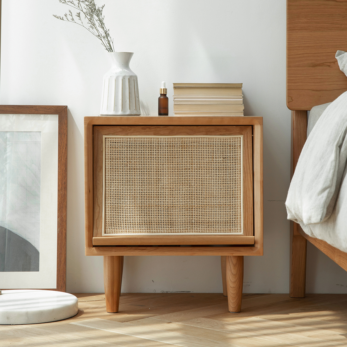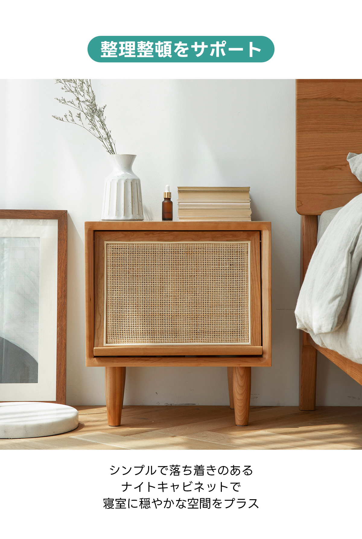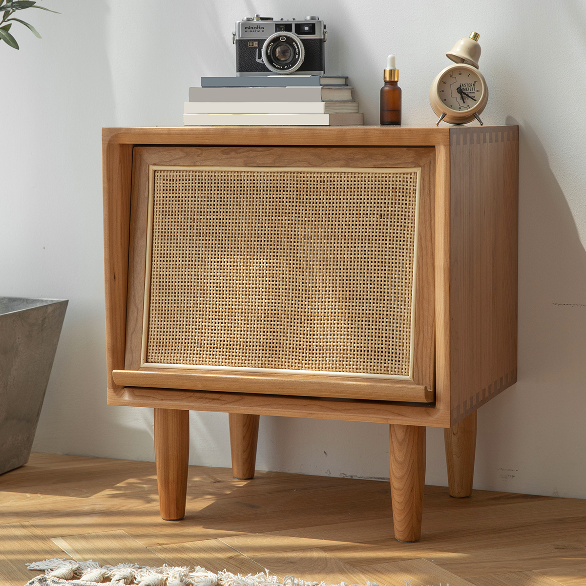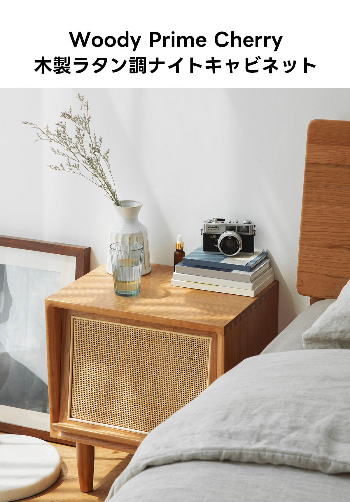 Woody Prime Cherry 木製ラタン調ナイトキャビネット
