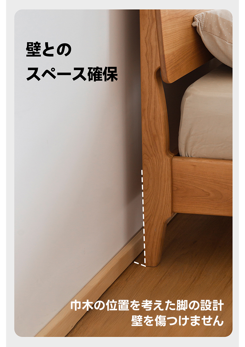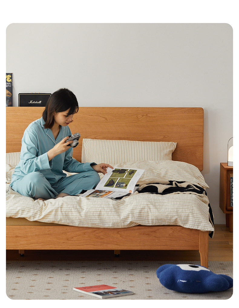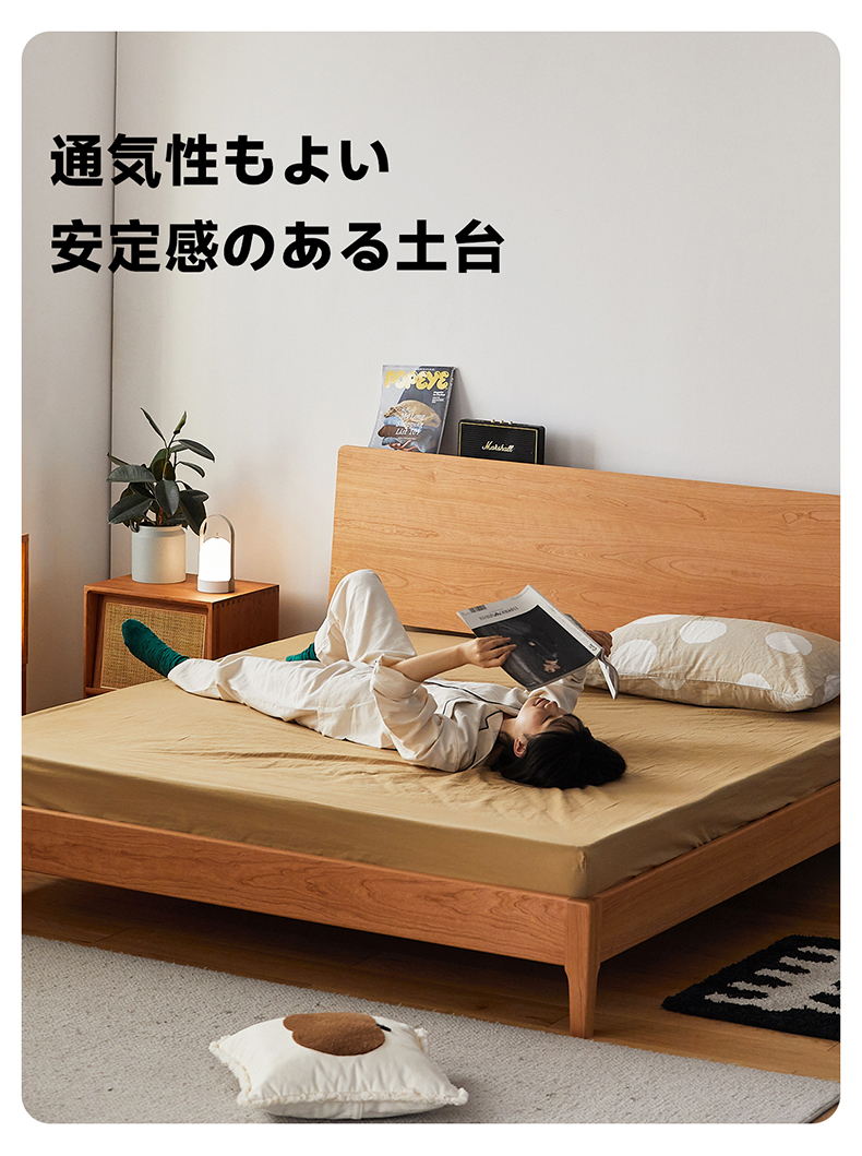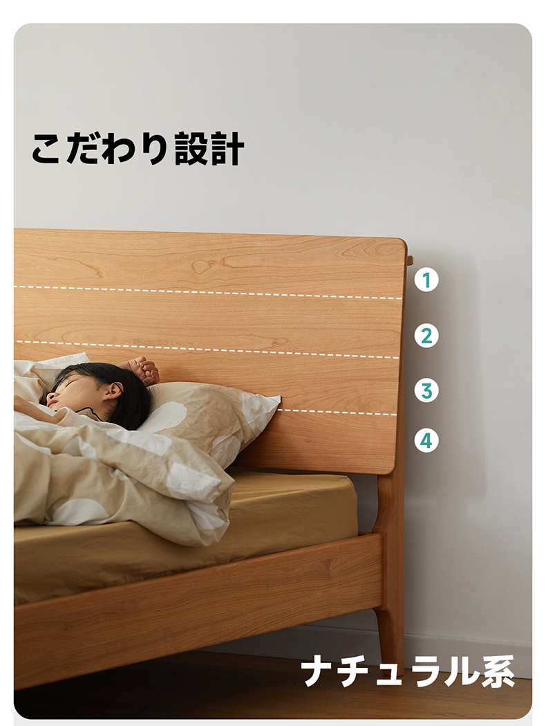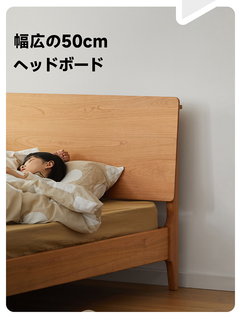 Woody Prime Cherry ナチュラルモダンハイヘッドボード木製ベッド
